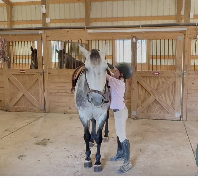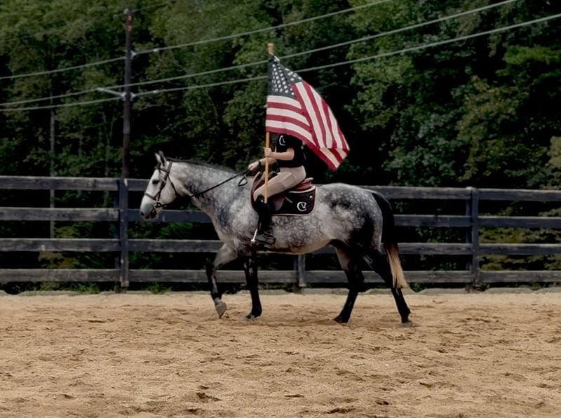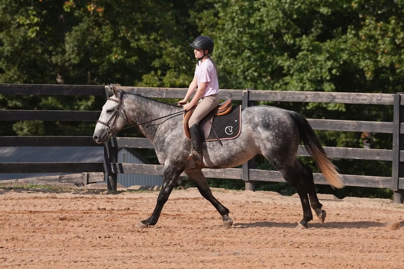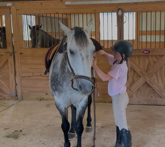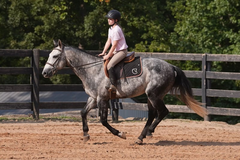 🍂 𝓐𝓾𝓽𝓾𝓶𝓷 𝑨𝑳𝑳 𝑺𝑻𝑨𝑹 𝑳𝑰𝑵𝑬𝑼𝑷 🍂 Happening now thru MONDAY | OCTOBER 6th - Available EXCLUSIVELY on HorseBid's website! For more details and to register visit: www.Horsebid.com CONSIGNOR CONTACT: Carolina Sport Horses 704.249.8500 LOCATION: Clover SC BREED: Quarter Horse REGISTERED: No REGISTERED NAME: Corsica COLOR: Dapple Gray HEIGHT: 14.3 AGE: 5 GENDER: Gelding Corsica is a 5 year old Quarter Horse gelding standing 14.3 hands high. This guy is the perfect family horse. He was born and raised on one farm and coming to our place was his first time leaving home. Most horses need time to settle but not Corsica. Pull him out of the pasture every day, or once a month, and have the same horse every time. He packs the kids around in the ring, on the trails, and on hunter paces. He goes anywhere you point him, bravely and honestly. His size is ideal for a family, as the little ones won't feel over faced, yet still being big enough for the adults to enjoy. His personality is the best! He loves to give back scratches and kisses, and will stand around for hours to be loved on. Corsica loves his people, and will gladly do any job with any rider, from the cross country course, trail rides, dressage, and more! In the ring, Corsica is straightforward and tolerant. He is doing first level dressage tests and will pop over small jumps. The kids are always choosing him for their riding lessons (Gracie's FAVORITE), and taking him out on hacks afterwards. He will ride in a frame, or on a loose rein, he's soft in the bridle and very easy to ride. His canter is the smoothest you'll find! He picks up both leads, has great walk to canter transitions, and is easily adjustable. Kids, and adults, of all ages and experience levels have ridden him. On the trails and off property, Corisca is a very good boy. He's gone on lots of hunter paces with the kids and always gets his rider to the other side, even if they don't do the best job of setting him up. He trail rides alone or in a group, and is happy leading or following the pack. He is as point and shoot as one can get. He will bravely cross any obstacle, river, bank, etc that you ask him to. He is a reliable and steadfast partner, in and out of the arena. Corisca crosses water, logs, is safe in traffic, and is quiet with other animals and livestock. Load him up and take him anywhere and know he will be the same horse on or off property. He is a gentleman to trailer and a breeze to go places with. He is so much fun on the cross country course! He jumps around all of the questions with ease, and is simple enough for a kid, pony clubber, or novice rider to jump around the course with. In the barn, Corsica is a favorite! If you see his video clips, you can see that the kids are always all over him. He absolutely adores people, and is the biggest love bug always gently nuzzling you and giving you scratches with his nose. Though he is in your pocket, he is still very polite and well mannered. Corsica is never pushy or rude - he is quite the gentleman! Corsica is a good boy when stalled, and currently lives out 24/7 weather permitting in a mixed herd. He gets along well with others and is the easiest of keepers. Corisca requires no maintenance, has no quirks, and is an overall solid citizen that everyone loves and enjoys!