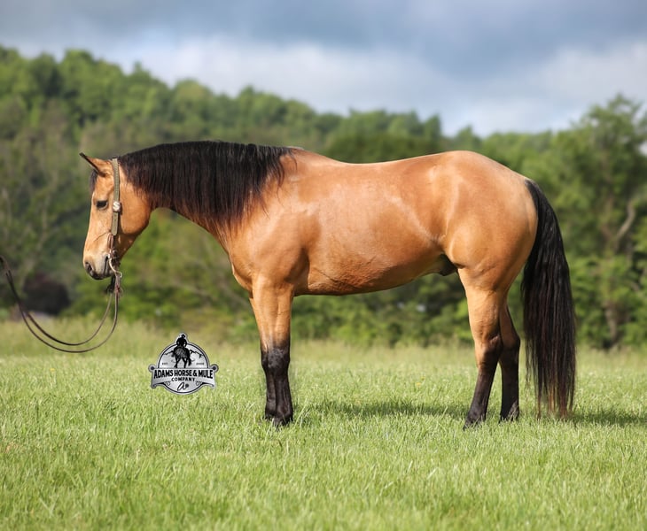 Zan is a 15h, stout built, 2020 model registered AQHA, golden buckskin gelding and that golden color goes all the way to his heart! Zan has the color and personality but wait there is more… Zan has a top notch pedigree with Paddys Irish Whiskey on the bottom side and Whimpys Little Step on the top side! He is bred to ride around and bred to do anything involving a cow! But the best part of him is that he is gentle and safe!!! The kids have ridden Zan down the trails and he is going to take care of any rider that is setting on him! He will pack a nervous beginner safely across creeks, over deadfall, up/down steep slopes and he will ensure that they have the most enjoyable ride! Zan has been ridden around the ranch, he has worked cows, roped and doctored sick ones at the feedlot. He has penned cattle at the stockyards, he has been used at an exotic sale to pen exotic wildlife including all sorts of deer, types of cattle, zebra and buffalo as well. Zan has been ridden at rodeo venues, loaded/unloaded bucking bulls and been ridden in the arena with the stands packed full of spectators. He is a pleasure to ride as he lopes perfect circles on a draped/loose rein, he has a smooth jog, a good stop, spins a circle both ways and backs with ease. If you need a horse that will help build your confidence that will take care of you on the trails or around the ranch and a horse that knows what do in situations where maybe you don’t… Zan is the horse for you! Go to visit our website for more pics and a video www.AdamsHorseAndMuleCo.com AHAMC has been in the horse business and sold horses over the internet since 2005. We have a long track record of success with hundreds of happy customers. We work hard to match riders with the correct horses and specialize in beginner safe, family friendly horses that have been used and checked out by our family! We can set up transportation anywhere in the US and look forward to working with you.