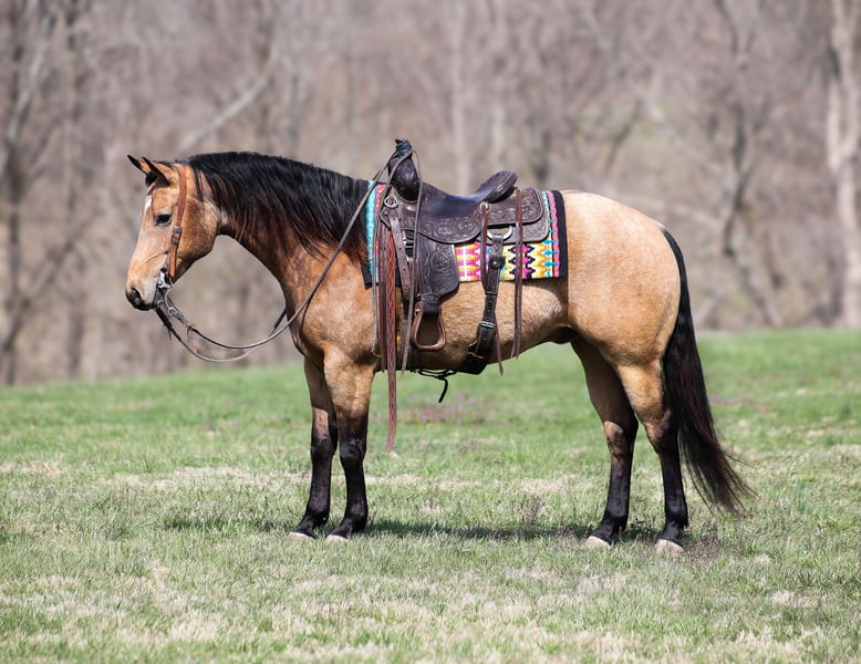 Whimps Little Step bred, Buckskin, Family Safe Ranch/Trail Horse!