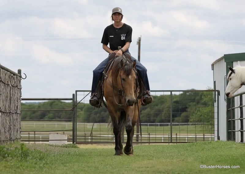 ONLINE AUCTION Place your bids at www.PlatinumEquineAuction.com Starting Bid $3500 Auction ends May 25th, 2025 Need a new saddle? Check out White Rock Saddles on our website or Facebook! Fox has had tons of real working miles outside, she has been worked outside on a big ranch and has tons of miles in the feedlot. She came out of big cattle country, and she has a lot of miles and experience under her belt at only 5 years old and 15hh. This mare acts just like a regular seasoned ranch gelding. She goes anywhere that you point her on a big long relaxed rein and neck reins well. She rides old-school, one-handed broke, very simple and uncomplicated to ride. She takes both leads, turns around both ways, side passes, has a big stop, and works a gate like a pro. She has been roped off a ton outside and in the pens and would be a great prospect that would take quickly to the team roping or the breakaway. She has been ridden outside over all sorts of terrain and knows the deal. She loves the water, and is relaxed handling rough terrain, ditches, rocky footing, and creeks. She is seasoned and confident out on the trail, happy to go out alone, and rides well in a group of horses as well. She could care less if you leave the other horses or leave the barn. This mare is no non-sense, been there, done that and seen that. She was also awesome riding through town and would probably do great at parades or crowded events, she really enjoyed the commotion and all the new things to look at. If you have been looking for a gorgeous gelding and just keep getting outbid…then don’t miss this mare, she’s been used just like a gelding her entire life and is the real deal. Please call anytime if you have any questions about her, Buster Horses Ashley 214-605-7174 Fox is located in Weatherford, TX – one hour from Dallas / Fort Worth International Airport. She is an easy day trip or fun overnight trip to come try out, from anywhere! We are experienced knowledgeable sellers and we can help with quickly arranging affordable shipping to any buyer’s location – we have experience shipping horses worldwide – including regularly to Hawaii, Canada, Mexico, Europe, and South Africa. Go to our Facebook page Buster Ranch and check our website for buyer reviews, for more videos, additional info, etc: https://busterhorses.com/Fox ONLINE AUCTION Place your bids at www.PlatinumEquineAuction.com Starting Bid $3500 Auction ends May 25th, 2025 Need a new saddle? Check out White Rock Saddles on our website or Facebook!