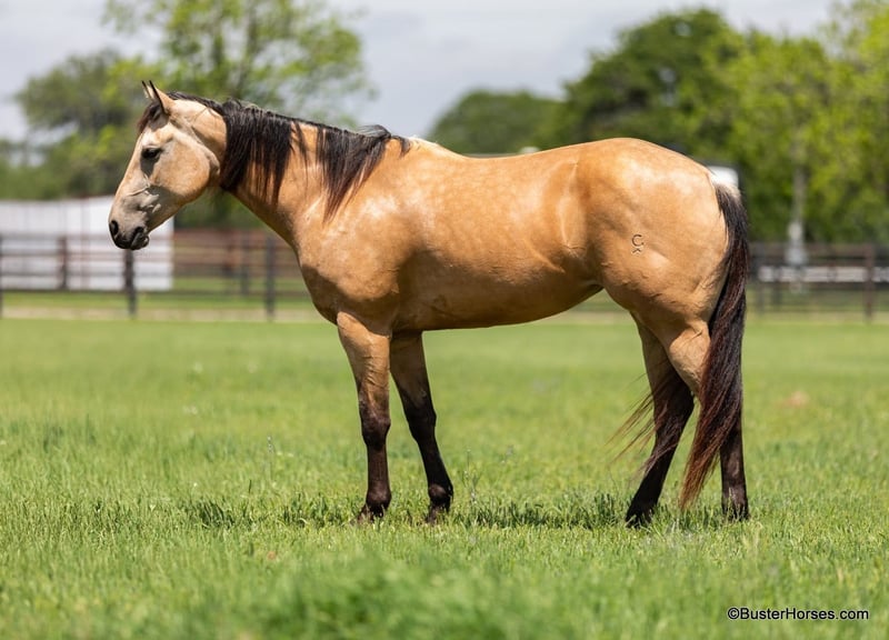 ONLINE AUCTION Place your bids at www.PlatinumEquineAuction.com Starting Bid $3500 Auction ends July 13th 2025 Need a new saddle? Check out White Rock Saddles on our website or Facebook! CR Toadally Sugar aka Verity is a stunning, 15h, well-built 5-year-old AQHA registered buckskin mare with all the right looks and a heart to match. She’s got a beautiful frosted black tail, balanced hip, clean legs, and a pretty, feminine head — and somehow, she’s even prettier in person than in her photos. She has been up in our fitting barn for 60 days and she looks like a million bucks!!! She’s had a solid start at a reined cowhorse trainer as a young horse, and then she has been used for checking the ranch, fences, riding in town, and working cattle. Verity is quiet in traffic, handles new environments with ease, and is just as content riding out solo as she is with a group. She’s quiet, confident, and consistent even with time off. She travels in all three gaits easily and in a natural balanced frame on a loose rein – she catches both her leads, backs up softly, has a nice turnaround, and has a great stop from any gait. She has a soft, correct foundation to go any direction: ✅ Ranch Riding ✅ Breakaway or Head/Heel ✅ All-Around Versatility Mare Verity is by an own son of Son of Hickory, with classic cow horse and running lines on her dam’s side — bred to be athletic, versatile, and durable. Verity was just recently maintained by the equine dentist, and was just shod by the farrier, wormed, and she has a recent Coggins. We can quickly and easily get travel health papers drawn up anywhere you need her to go. She will arrive to her new owner with all cares in order and ready to do whatever job you have for her! Please feel free to reach out to us to come ride and try Verity, we would love to meet you in person and show her to you. We are conveniently located only an hour from a large centrally located international airport, making coming to see her possible no matter where you live! Please check out Buster Horses / Buster Ranch our past customer reviews on Google, Facebook, and our own website. And please go to Verity’s web page for more information, pictures, and for additional videos: BusterHorses.com/Verity Don’t miss your chance to own a mare that offers pedigree, performance, and world class looks! Call/text Ashley with Buster Horses 214-605-7174. ONLINE AUCTION Place your bids at www.PlatinumEquineAuction.com Starting Bid $3500 Auction ends July 13th 2025 Need a new saddle? Check out White Rock Saddles on our website or Facebook!