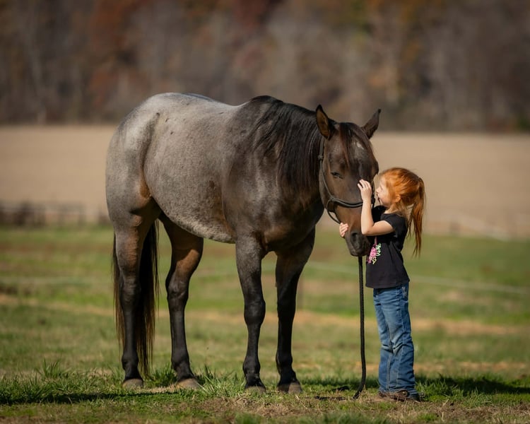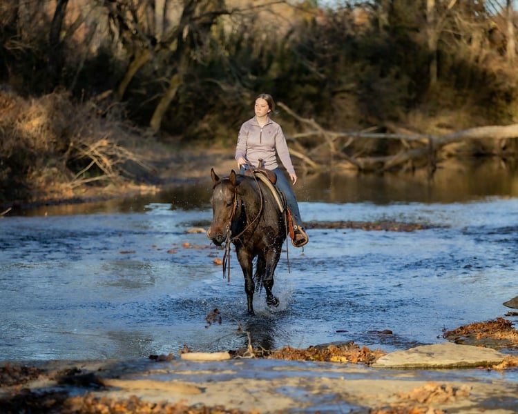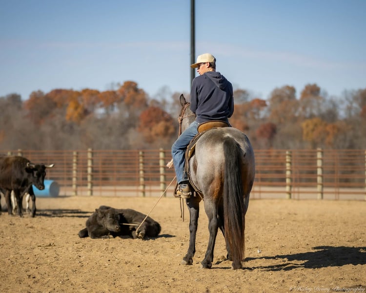 🎄𝐓𝐇𝐄 𝑯𝒐𝒍𝒊𝒅𝒂𝒚 𝐂𝐋𝐀𝐒𝐒𝐈𝐂🎄 Happening now thru MONDAY | DECEMBER 15th - Available EXCLUSIVELY on HorseBid's website! For more details and to register visit: www.Horsebid.com CONSIGNOR CONTACT: Jamie Thomason 270-772-1706 LOCATION: Auburn, KY BREED: AQHA REGISTERED: Yes REGISTERED NAME: DJ VALENTINE BLU MAN COLOR: Bay Roan HEIGHT: 15 AGE: 5 GENDER: Gelding Show-stopping presence and stunning good looks, he is as eye-catching as he is capable. Jericho is a 5 yr old, AQHA, Bay Roan gelding, standing at a comfortable 15 hands. Seasoned on the trail and confident in the arena, Jericho brings true versatility, athleticism, and a bright, willing mind to every ride, making him a standout partner for all your adventures! Jericho has been my personal partner on the trail. He’s sure-footed, calm, and confident. Travels through creeks, up and down inclines, down winding paths, over rocky terrain, and even navigating his own path through thick underbrush when normal paths were impassable, he handles it all with patience and a steady step. Jericho will ride away from the group or stand patiently as others ride away. He is unbothered when other riders pick up the pace in front of him, never changes speed unless asked. He stands patiently for mounting and waits until you ask him to ride off. He’s been very enjoyable to bring along with friends on weekend rides. Jericho is confident in the arena. A fun, forward ride, he travels both directions on the correct lead, moves laterally, transitions smoothly, and has a nice stop. He has been lightly started over cross rails. He’s a natural! Has plenty of scope & the willingness to pursue stadium jumping with a confident rider. On the farm, Jericho has helped us gather cattle alongside stock dogs. Opens & closes gates. He’s unbothered by UTV/ATV’s, large farm equipment, and is comfortable around other livestock. Jericho is an easy to own horse. He has impeccable stall manners, always neat & tidy. Also perfectly content living outside. He turns out in a mixed herd, no issues & is easy to catch. A gentleman to load & haul. Fun, versatile, and always ready for an adventure, Jericho is the kind of partner who rises to every occasion. Whether you’re searching for a trusted trail companion or an enjoyable arena horse, Jericho is the one! If you would like to meet Jericho or have any other questions prior to adding him to your family, feel free to reach out! PPE’s welcome! We can assist in arranging shipping to anywhere! Contact Jamie @ 270-772-1706 Located in Auburn, KY