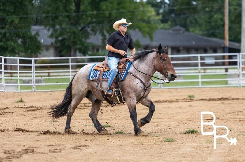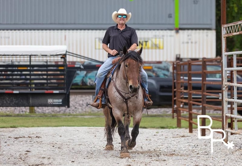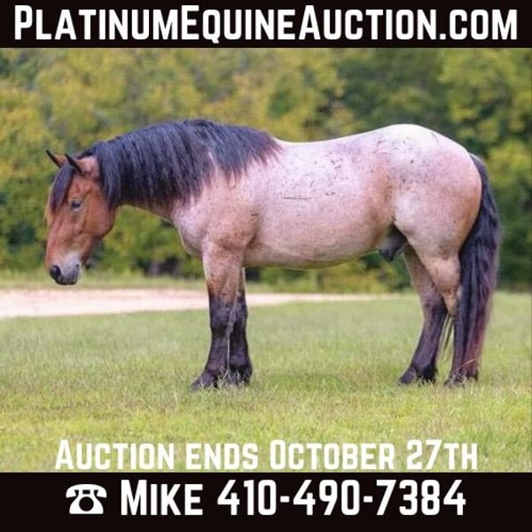 ONLINE AUCTION Place your bids at www.PlatinumEquineAuction.com Starting Bid $3500 Auction ends October 27th, 2024 Need a new saddle? Check out White Rock Saddles on our website or Facebook! Everyone meet Ernie….This absolutely stunning unicorn is what dreams are made of! He is a bay roan Percheron/QH cross standing 15 hands tall and 4 years of age. This is one of the kindest and safest horses to ever come through our program. I truly believe anyone who wants to ride, can ride this horse. He has three soft and easy gaits that are very smooth to ride. Does all of the obstacles out on the trail. Does it all in stride and with ease . Nothing bothers this horse he will go and do anything with no fuss. Has been used at local rodeos to carry the flag at opening ceremony. Also as a pickup horse for youth rodeo. Ernie has been to the little town of Mt. Grove Missouri on his days off. Where he is seeing all the sites around town and entertaining families for pics and rides. He is truly a kind hearted unicorn. We have started him over fences which he enjoys. Please watch our must see video. .You will be entertained for sure.Ernie is totally UTD on farrier,dental,vetting and has all vaccines and necessary paperwork ready to go. Has a clean vet inspection from our licensed veterinarian. We have professional shipper’s that we use. That can haul horses nationwide. Ernie is located in Mountain Grove, MO. We encourage customers to come out and try our horses. Call for more information Beaver Ranch Mike 410-490-7384. ONLINE AUCTION Place your bids at www.PlatinumEquineAuction.com Starting Bid $3500 Auction ends October 27th, 2024 Need a new saddle? Check out White Rock Saddles on our website or Facebook!