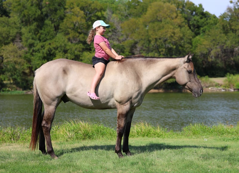 🍂 𝓐𝓾𝓽𝓾𝓶𝓷 𝑨𝑳𝑳 𝑺𝑻𝑨𝑹 𝑳𝑰𝑵𝑬𝑼𝑷 🍂 Happening now thru MONDAY | OCTOBER 6th - Available EXCLUSIVELY on HorseBid's website! For more details and to register visit: www.Horsebid.com CONSIGNOR CONTACT: MM Ranch 469-595-6289 LOCATION: Forney, TX BREED: Quarter Horse REGISTERED: Yes REGISTERED NAME: Hollywood Poco Glo COLOR: Grullo HEIGHT: 15.1 AGE: 6 GENDER: Gelding 🌟AQHA register grullo gelding!!! 🌟Yes a registered grullo gelding!!! He’s got that old fashion color everyone wants. And ONLY 6 years old!! Meet “Hollywood Poco Glo” his barn name is Woody. This is absolutely the barn favorite around here. He is 15.1 hands tall. You don’t see them like this everyday. 👉🏼 You can catch Woody in 100,000 acre pasture. He will walk right up to you. This is a kind very willing to please type. He will do anything you ask him to do. He has been used on the ranch to check cattle and fences. He crosses water, bridges, can ride him in any type of terrain. He will go out alone on trails too. Absolutely nothing brothers this horse. He is as laid back as they come. The best part is he is only 6 years old. He has the potential and ability to go on to do anything you want him to do. And he is super quiet and gentle. 💥💥Absolutely no buck or bad habits. ⚡️He sells 100% safe and sound in every way. We can help with making shipping arrangements. New coggins and health certificate will be included.
