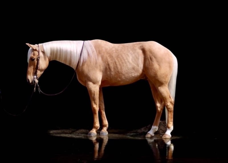 ONLINE AUCTION Place your bids at www.PlatinumEquineAuction.com Starting Bid $3500 Auction ends March 30th, 2025 Need a new saddle? Check out White Rock Saddles on our website or Facebook! Dorado is truly a one-of-a-kind horse that you don’t want to miss out on. With his beautiful palomino gold coat and flowing long mane, he is a stunning sight to behold. Standing at 15.1 hands tall and 5 years old, he has the kindest and sweetest personality that you will ever encounter in a horse. One of the most remarkable things about Dorado is how safe he is. You can trust him completely when riding as he has the soul of a true saint. Dorado remains calm and composed at all times, making it easy for anyone to take him anywhere they desire. He has been on countless trail rides and can easily navigate through any terrain – be it hills, branches, or water – with confidence. Dorado has been used on the ranch and is asset to have in the barn. He is the one you can trust with anyone and will get the job done. Gathering. Branding or just checking the cows this boy is ready to help. In the arena, Dorado is nothing short of a dream horse. He rides collected and soft, picks up leads effortlessly and responds to even the lightest touch. His back-up and turn around are smooth and easy. He truly embodies what every rider looks for in an ideal mount as far as obstacles go, there’s nothing that fazes Dorado! This seasoned horse can tackle anything thrown his way, From walking over bridges and tires to riding through covered wagons and pool noodles – nothing seems too daunting for this brave horse. He’s also unfazed by blowy tarps, flying flags, or bouncy balls; in fact, he takes everything in stride while remaining peaceful throughout. Traffic, bickers and trucks no problem Dorado couldn’t care less about them; instead, he calmly rides alongside cars without any hesitation or fear.Dorado’s ground manners are impeccable – just like his riding skills! He stands tied without fussing around and loves being fussed over by his human companions. In fact, he’s such a friendly and affectionate horse that loves nothing more than attention.Whether you’re a beginner or an experienced rider, Dorado is the perfect horse for anyone who wants a safe and reliable companion. He rides alone or in groups, adapts quickly to stall or pasture life, tacks up easily, and is a dream to handle on the ground. This rare find truly has something for everyone. Don’t miss out on this amazing opportunity to bring home the one and only Dorado. Contact Longhorn Ranch, Dina today at 831-537-1915 and make this incredible horse a part of your family! Located in Paicines, CA, we assure you that you won’t be disappointed with what this gem of a horse has to offer. ONLINE AUCTION Place your bids at www.PlatinumEquineAuction.com Starting Bid $3500 Auction ends March 30th, 2025 Need a new saddle? Check out White Rock Saddles on our website or Facebook!