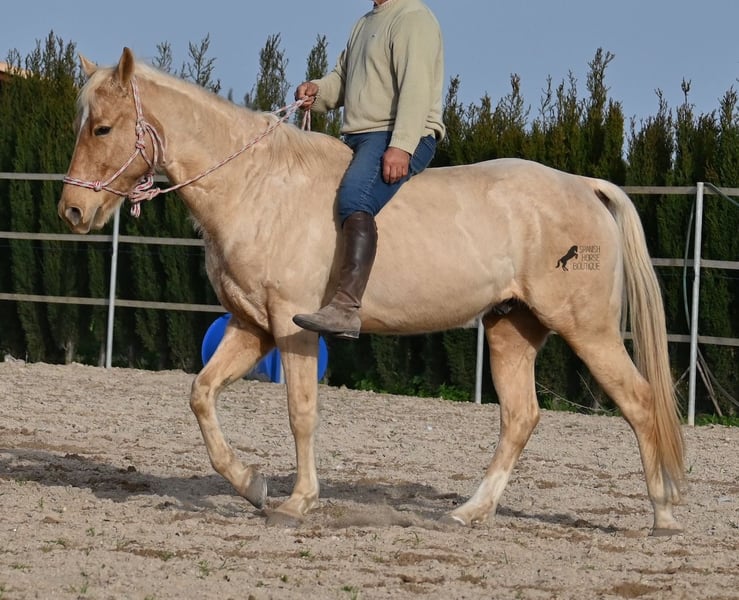 Born in 2020, this American Quarter gelding (full American Quarter Horse Association paper) just blossoms in the sun of Mallorca, where he was born and lives. But he is so much more than just his color! The youngster is a son of the reining stallion JAC WHIZ PINE and his dam is JENNY TUFF BAR, a Buckskin mare who gave him the color gene. Thanks to the hard soils of Mallorca and good breeding, he has super clear legs and is very well tied up. He stands in a robust stance, which makes him very hard-wearing, even in the very changeable weather conditions. He is incredibly centered at work for such a young horse! He stops immediately on a short whoa, whether on the lunge or ridden. Under saddle he already has a lot to offer, which he has proven successfully in regional trail and western competitions, usually even taking first place! He is fearless in the field and courageously strides past everything that makes others shy away. His trusted rider rides him without a saddle, only on a halter and even then he does all the lessons and doesn't show any naughtiness. Thanks to the many competitions and rides, he can be loaded very well, is very willing to be forged and is always on call to work. At currently 156 cm, he is also a good size! He is currently on Mallorca! Videos and pedigree available on request. I would be happy to organize an AKU, riding, transport or even your trip, should you come to see him in person. Details can be found on my website or in conversation. Saludos from Spain