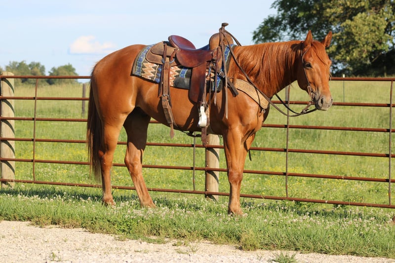 ONLINE AUCTION Place your bids at www.PlatinumEquineAuction.com Starting Bid $3500 Auction ends June 16th, 2024 Need a new saddle? Check out White Rock Saddles on our website or Facebook! Benny is a 2020 model 15.2H registered AQHA gelding that has a very impressive pedigree! He is bred to slow lope and that’s his favorite thing to do! Benny has been exposed to many types of situations out on the farm and on the trail! He rides in an arena as well! I can’t explain to you enough how gentle this horse is! You can go out in a 10 acre field and he will come up and put his head in the halter! This horse has a great brain for a young and learning equine! He has a perfect start to him and has had tons of ground work and desensitizing done! He is GENTLE AND A PUPPY!!! He will walk, trot, and lope the very best! Here is a young horse with his whole life ahead of him! He has been in good hands and is going to make such a nice gelding! He loves to learn and still has learning to do! He is super easy to handle and mess with! If youre looking for a horse that’s started the best that you can take come and continue to teach him every time you saddle him up here he is! He has a great set of papers and is super good minded! He is located in Sonora Ky! Call Clayton Ryan 270-766-2641. ONLINE AUCTION Place your bids at www.PlatinumEquineAuction.com Starting Bid $3500 Auction ends June 16th, 2024 Need a new saddle? Check out White Rock Saddles on our website or Facebook!