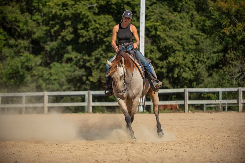 ♦️ 𝐭𝐡𝐞 𝐀𝐌𝐄𝐑𝐈𝐂𝐀𝐍 𝓕𝓪𝓵𝓵 𝓒𝓵𝓪𝓼𝓼𝓲𝓬 ♦️ Happening now thru MONDAY | OCTOBER 20th - Available EXCLUSIVELY on HorseBid's website! For more details and to register visit: www.Horsebid.com CONSIGNOR CONTACT: Blue Ridge Performance Horses 608-540-8038 LOCATION: Mayfield, KY BREED: AQHA REGISTERED: Yes REGISTERED NAME: JT MR DOC BAR ONE COLOR: Buckskin HEIGHT: 15.2 AGE: 5 GENDER: Gelding Introducing Captain, a stunning 5-year-old flashy buckskin gelding with old school breeding going back to the best, such as Tequila Hickory and Doc Bar! Captain has been in professional training for the past 2 years learning the reining maneuvers and ranch riding. He has also been used for giving lessons based off his gentle nature; furthermore, Captain has shown in ranch riding and conformation events with points in his name! Showcasing his solid spin, big stop, and easy changes. Captain is very responsive to subtle cues, moving off your seat with ease. Standing at 15.2h with a LOT OF BODY and BIG BONE, Captain would make an amazing, reliable family trail deluxe / ranch show horse or even a header, having been roped off of in the past. With no bad habits, vices, or blemishes, Captain offers a clean slate for his next rider. Good with farrier, vet, loading and backing out of a trailer, and will stand tied all day. Contact Billi at 608-540-8038 for more information.