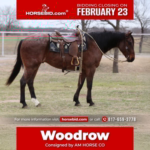 💎 𝐓𝐇𝐄 𝓓𝓲𝓪𝓶𝓸𝓷𝓭 𝐒𝐇𝐎𝐖𝐂𝐀𝐒𝐄 💎 Happening now thru MONDAY | FEBRUARY 23rd - Available EXCLUSIVELY on HorseBid's website! For more details and to register visit: www.Horsebid.com CONSIGNOR CONTACT: AM HORSE CO 817-659-3778 LOCATION: Mineral Wells, TX BREED: AQHA REGISTERED: Yes REGISTERED NAME: RW WOODROW COLOR: Bay roan HEIGHT: 15.2 AGE: 6 GENDER: Gelding Woodrow is the kind you don’t come across every day. This 12 year old AQHA bay roan gelding stands 15.2hh, is stout, well-built, and has the kind of temperament everyone is searching for. Whether you want a safe mount for the whole family, a reliable partner for ranch work, or a versatile all-around gelding, Woodrow checks every box. Woodrow has truly done it all. He has been trail ridden extensively, ridden both English and Western, taken over small jumps, and even roped on in and out of the arena. No matter what you point him at, he gives 100% with a calm, willing attitude. On the trail, he’s confident and steady, going through water, up and down hills, and across new terrain without hesitation. In the arena, he is responsive, soft, and smooth to ride. His greatest quality, however, is his dependability. Woodrow is safe for kids, beginners, and husbands, yet broke and versatile enough for a more experienced rider to enjoy. He’s forgiving, kind, and always consistent, and is the same horse every time you saddle him. He’s the type you can trust to take care of his rider. On the ground, Woodrow is just as easy. He stands quietly for grooming, saddling, the farrier, and the vet. He loads and unloads with no fuss, hauls well alongside other horses, and ties to the trailer patiently. He gets along well in a mixed herd but is also content in a stall. Sound, safe, and honest, Woodrow is the kind of gelding that instantly becomes a barn favorite. He is versatile, steady, and seasoned, making him a perfect fit for a family, a beginner, or anyone who simply wants a dependable, trustworthy horse. We love Woodrow, and he deserves the very best home. Horses like him don’t come around often, and we are excited to see him make someone else’s dreams come true. We are located in ♦️Mineral Wells Texas♦️but have reputable haulers that go all over the country, including Hawaii and Canada. Give me a call or text and I’d be happy to answer any questions! 817-659-3778