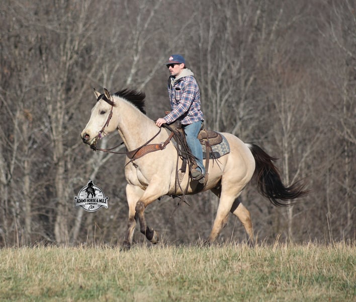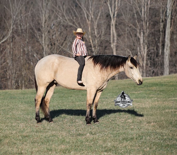 𝐀𝐝𝐚𝐦'𝐬 𝐇𝐨𝐫𝐬𝐞 & 𝐌𝐮𝐥𝐞 𝐂𝐨𝐦𝐩𝐚𝐧𝐲'𝐬 ✷𝑬𝒗𝒆𝒓𝒚 𝑴𝒊𝒍𝒆 𝑨 𝑴𝒆𝒎𝒐𝒓𝒚✷ 𝐄𝐗𝐂𝐋𝐔𝐒𝐈𝐕𝐄 𝐒𝐀𝐋𝐄 Happening now thru MONDAY | FEBRUARY 2nd - Available EXCLUSIVELY on HorseBid's website! For more details and to register visit: www.Horsebid.com CONSIGNOR CONTACT: Adams Horse and Mule Company 606-308-2461 LOCATION: Mt. Vernon, KY BREED: AQHA REGISTERED: Yes REGISTERED NAME: BQH WInters Moon COLOR: Buckskin HEIGHT: 15.3 AGE: 6 GENDER: Gelding BQH Winters Moon is a magnificent looking 15.3H+, STOUT BUILT, Buttermilk Buckskin, gelding. He is registered in the AQHA and is a 2020 model, with a pedigree going back to Two Eyed Red Buck. Winter has been ridden around the ranch, checked cows and rode fences. He is a slow and laid back type of horse that will just ease along down the trails with no hesitation. When out on the ranch or going down the trails he will cross creeks, ditches, logs and navigate rough rocky areas. He very friendly and is a horse that the whole family will love! He is safe in traffic, whether that be trucks or cars. He lopes nice circles, reins around and has a good stop. He is big, beautiful and buckskin... what more could a person ask for? Feel free to call Eric 606-308-2461 with any questions!
