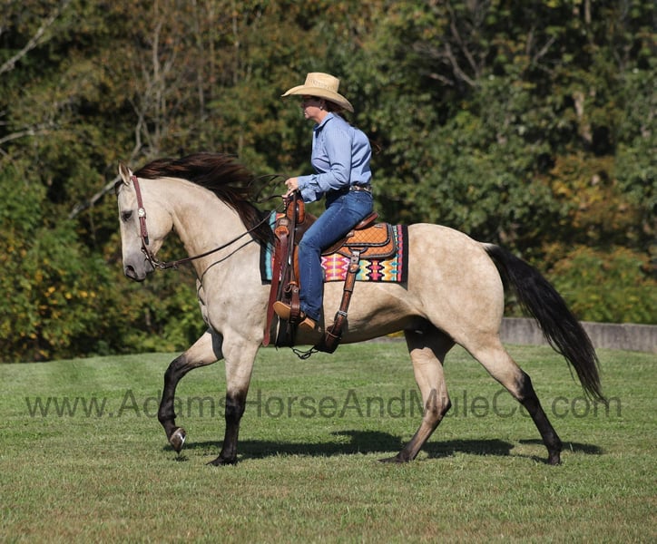 This horse sells in Cannon Falls, MN on February 1st and is consigned to www.NorthStarHorseSale.com you can bid online, bid in person and come preview each horse and ride them yourself before bidding. Shipping is available anywhere in the USA. $5000 starting bid, all horses sell sound. Jewell’s Pardee is the life of the party and will be the center of attention! With his high contrast buckskin coloring, pretty dapples and personality he sparks folk’1s attention from all angles! Pardee is a well built 15.3hh, 2020 model, registered APHA, Buckskin Gelding. His name might suggest that he’s just here for a good time but he knows how to go to a job and how to get it done the right way! Pardee can do anything from slow easy trail rides packing saddle bags full of beverages to pasture roping/doctoring, he can push the cows around and hold anything that you tie to the horn. If you want to come out of the box, Pardee knows how to turn a steer and has a done good roping on the head side. If you just want to enjoy those long slow miles on the trails with your friends, Pardee can babysit anyone in the family as he is perfectly content to just mosey along slow and easy. He will cross creeks, deadfall, rough rocky areas and scale steep slopes. Pardee is one hand broke, he reins around with ease, has a big stop and lopes very nice circles on the correct lead. Pardee is easy to ride and is safe for all levels whether you use him daily or once a month. Climb on, set back and enjoy this Pardee! Feel free to call Eric 606-308-2461 with any questions.