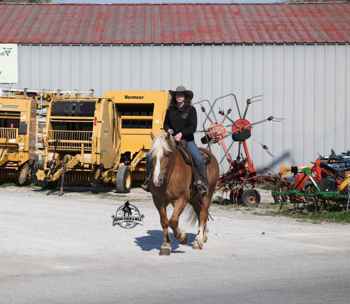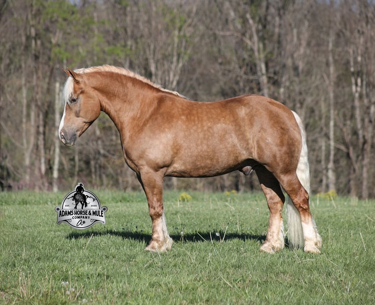 2 week Guarantee-Go to visit our website for more pics and video link at www.AdamsHorseAndMuleCo.com AHAMC has been in the horse business and sold horses over the internet since 2005. We have a long track record of success with hundreds of happy customers. We work hard to match riders with the correct horses and specialize in beginner safe, family friendly horses that have been used and checked out by our family! We can set up transportation anywhere in the US and look forward to working with you. If your confidence levels are low and you have had nothing but bad luck with you other horses… just say goodbye to those days because your new Buddy is here! Buddy is a beautiful Golden Palomino/Blonde Sorrel Gelding that is very stocky built, he is 6 years old, is standing 15.2hh and he is a looker! He is a draftcross horse that has completed the natural horsemanship program, is very friendly and loves attention!! He knows some tricks as well as he will lay down on command. Buddy has done it all from being ridden by small children down the highways to being ridden around the ranch, checked cows, rode fences and cruised the trails. He has been used at brandings and drug calves to the fire. He is a laid back type of guy that will just plod along down the trails with no hesitation and not in a hurry. He has been on camping trips and has been ridden by all ages of riders from 6 to 86 that guy will be safe and easy to ride. When out on the ranch or going down the trails he will cross creeks, ditches, logs and navigate rough, rocky areas. He is safe in traffic whether that be trucks or cars. He walks on a loose rein, has a nice jog, his lope is slow and collected plus he lopes very nice circles on a loose/draped rein! Buddy is a great horse for the whole family! He has been exposed to all kinds of wildlife such as deer or turkey. He is athletic and does great under English tack and goes over the rails with ease. He is harness broke for all farm machinery and buggies. Buddy is one that the whole family will love, he will be perfect for the guest to ride as he will build his riders confidence, with a personality that will make him everyone’s best friend! Feel free to call Eric 606-308-2461 with any questions!