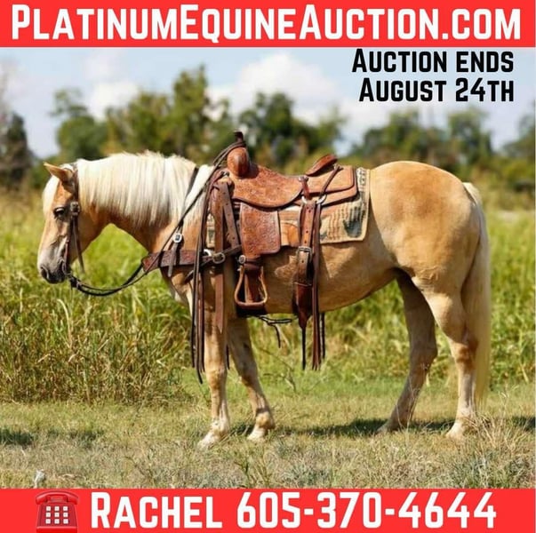 ONLINE AUCTION Place your bids at www.PlatinumEquineAuction.com Starting Bid $3500 Auction ends August 24th, 2025 Need a new saddle? Check out White Rock Saddles on our website or Facebook Meet Buttercup! A super sweet 6 year old halflinger mare, standing 13.3 and wide as she is tall! She is super cute and has a temperament to match her looks. Buttercup is the perfect partner for riders of all ages and skill levels, from beginners to experienced riders. Buttercup’s calm and patient demeanor makes her a joy to work with. With her sturdy build and smooth gaits, she’s comfortable to ride for hours on end. Buttercup has been trail rode all over, she is absolutely gentle and easy to get along with, she goes anywhere you ask her and always has a willing and positive attitude! Buttercup has also had a light start in the arena and shows alot of potential and would even excel under English tack! If you’re looking for a smart and willing young mate that is also absolutely gentle then don’t miss the opportunity to make buttercup a part of your family! Located in Rusk TX, nationwide shipping is available! Please reach out to Rachel with TR Livestock 605-370-4644 if you have any questions! ONLINE AUCTION Place your bids at www.PlatinumEquineAuction.com Starting Bid $3500 Auction ends August 24th, 2025 Need a new saddle? Check out White Rock Saddles on our website or Facebook