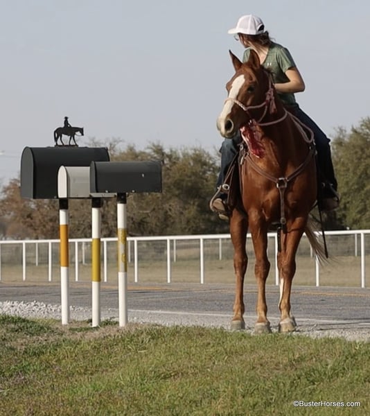 ONLINE AUCTION Place your bids at www.PlatinumEquineAuction.com Starting Bid $3500 Auction ends April 6th, 2025 Need a new saddle? Check out White Rock Saddles on our website or Facebook! Abe is a super fun horse – just the right size at 14.2 and thick made, he seems bigger than he is because he’s long legged and big bodied!!! He is only 6 years old and has his whole life in front of him. He has a great personality, extremely kind and willing and he loves to have a job. He is the same horse if you turn him out for a month, or if you ride them every day. He is content to go anywhere in a group if you ride out, he’ll ride next to a horse, behind all the horses, or he will lead the pack confidently! He rides on a big loose rein – and always has his ears up looking around, excited to go see the next thing there is to see. He hops right on the trailer and hauls quietly, and ties, saddles, bridles, and is great with his feet for the farrier. He is extremely honest and kind – our camera lady kinda panicked and bailed shooting because she was terrified… but check out the video where his loping bosal becomes untied -RIGHT ON the side of the highway!!! He just hung out and stopped while the rider reached up and re-tied it. He is a sweet, fun, kind horse. He has enough athletic ability and handle to go use on the ranch or would be great in the turn back pen – and he has been lightly started in the roping pen on both the head and the heel side. Abe just wears front shoes and his feet were just reset last week. His teeth were just done by our equine dentist two weeks ago, and he also had his sheath cleaned, his ears preemptively treated for ticks, and was dewormed at that time. He is in great shape, just a hair on the fat side, but is plenty fit enough to go right to work. He is an easy keeper and in good health. Watch his video, and to see additional videos, go to our website: BusterHorses.com or our Facebook page Buster Horses or call Ashley with Buster Horses 214-605-7174 for more info. Abe is located in Weatherford, TX – one hour from Dallas / Fort Worth International Airport. He is an easy day trip, or fun overnight trip to come and try out, from anywhere! We are experienced, knowledgeable sellers, and we can help with quickly arranging affordable shipping to any buyer’s location – we have experience shipping worldwide – including regularly to Hawaii, Canada, Mexico, Europe, and South Africa. Check our website for buyer reviews, more videos of Abe, additional info, etc: BusterHorses.com/Abe ONLINE AUCTION Place your bids at www.PlatinumEquineAuction.com Starting Bid $3500 Auction ends April 6th, 2025 Need a new saddle? Check out White Rock Saddles on our website or Facebook!