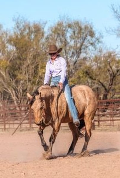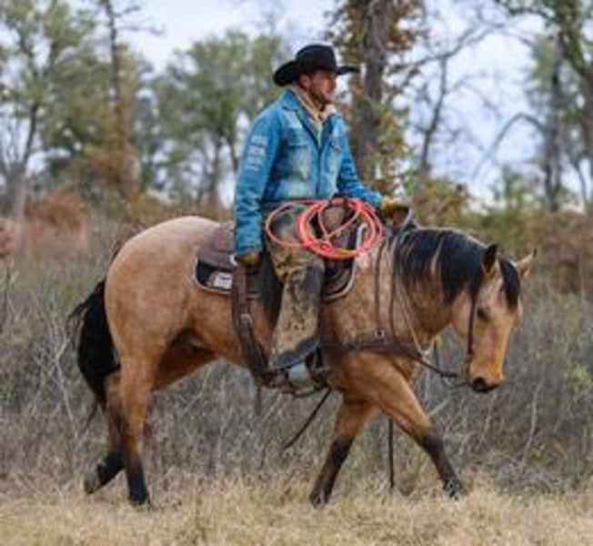 ⚜️ 𝓗𝓮𝓻𝓲𝓽𝓪𝓰𝓮 𝐖𝐢𝐧𝐭𝐞𝐫 𝓒𝓵𝓪𝓼𝓼𝓲𝓬⚜️ Happening now thru MONDAY | DECEMBER 29th - Available EXCLUSIVELY on HorseBid's website! For more details and to register visit: www.Horsebid.com CONSIGNOR CONTACT: Bond Ranch & Performance Horses 615-854-6883 LOCATION: Ranger, TX BREED: Quarter Horse REGISTERED: Yes REGISTERED NAME: HF THE BEAST COLOR: Buckskin HEIGHT: 14.2 AGE: 6 GENDER: Gelding HF THE BEAST "Capone" Bond Ranch & Performance Horses “Capone” is an eye-catching 14.2hh buckskin gelding with the kind of ability and mind that’s hard to find. This six-year-old gelding is by HF Mobster (NRHA $123,000+ earner and Million Dollar Sire), a son of Hall of Fame stallion Colonels Smoking Gun, with Hollywood Dun It influence on the top side. His bottom side adds proven cow sense and ranch-horse influence, blending elite reining bloodlines with real-world usability. Capone is exceptionally well trained in the arena with a smooth, fluid way of going. He glides around, floats at the trot, neck reins easily, stays soft in the bridle, and has correct, balanced lead departures. Not only is Capone a standout in the Western arena, he also excels under an English saddle. He moves beautifully through his gaits and is always up for some jumping fun. Bareback, bridleless, English, or Western—this gelding does it all. Capone has a big, endearing personality; he’s personable, easy to be around, and the kind that keeps you smiling without ever being pushy or silly under saddle. He is not a dead-head or a hot horse, but that ideal in-between with a confident, level-headed demeanor. Outside the arena, Capone is as dependable as they come. He is quiet with flags, whips, dragging logs, dogs underfoot, and heavy equipment such as tractors and skid steers. He travels well, sorts cattle willingly, has been used to gather and doctor, and stays broke even after time off. On the trail, he confidently navigates steep, rocky terrain and water crossings with ease. Cinch him up on a cold morning and head out—Capone brings no funny business and is ready to go to work. Whether it’s getting a job done on the ranch, turning heads in the show pen, or easing down the trails, Capone is guaranteed to be one you’re proud of. We are happy to answer any questions you may have about Capone. Please give Morgan a call at 615-854-6883 for additional information or to schedule a time to come meet him.