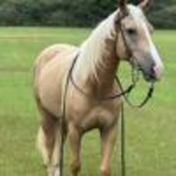 ONLINE AUCTION Place your bids at www.PlatinumEquineAuction.com Starting Bid $3500 Auction ends August 17th, 2025 Need a new saddle? Check out White Rock Saddles on our website or Facebook Bodie is a 2019 model palomino quarter horse gelding standing 14.2 hands tall. He stands to be saddled and will stand tied all day long. He is an excellent trail horse and doesn’t spook at anything in his path. He will walk out alone or with other horses on the trail. Bodie will cross anything in his path whether it be water or logs. He has been ridden bareback and with a saddle. Bodie has a very pretty, smooth trot and a very nice collected lope with a huge stop. He would make a great ranch horse as he lives having a job. He has never been taken to a barrel race, but a week ago, we hauled him and he handled the sights and sounds like he was a seasoned rodeo horse. He stays very collected in your hand and wants to please. He isn’t afraid of the dogs or tractors and stays focused on the job. Bodie has been ridden everywhere- from the trails, through town, and even on quail hunts. He is super sweet and will follow you around for hours in the pasture. He has a puppy dog personality and always wants to see what you’re up to. He is truly a pleasure to have around and is looking for his perfect forever home. Bodie loads and unloads without a second thought! UTD on coggins and vaccines. Contact Andrew Dismuke 229-347-7687 with any questions. Located in Dawson, GA. ONLINE AUCTION Place your bids at www.PlatinumEquineAuction.com Starting Bid $3500 Auction ends August 17th, 2025 Need a new saddle? Check out White Rock Saddles on our website or Facebook
