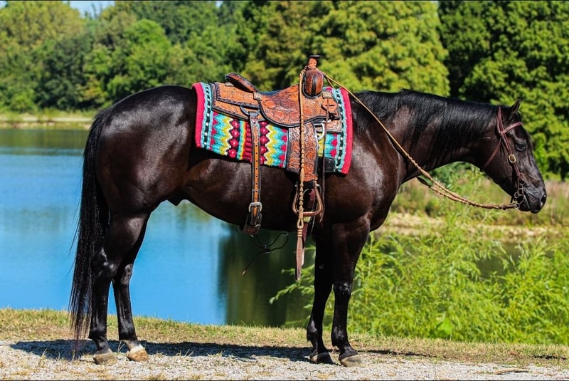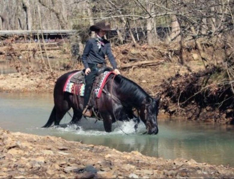 ♦️ 𝐭𝐡𝐞 𝐀𝐌𝐄𝐑𝐈𝐂𝐀𝐍 𝓕𝓪𝓵𝓵 𝓒𝓵𝓪𝓼𝓼𝓲𝓬 ♦️ Happening now thru MONDAY | OCTOBER 20th - Available EXCLUSIVELY on HorseBid's website! For more details and to register visit: www.Horsebid.com CONSIGNOR CONTACT: Pleasant Valley Equine 434-981-3863 LOCATION: Robards, KY BREED: Quarter Horse REGISTERED: Yes REGISTERED NAME: Joes Last Tiger COLOR: Black HEIGHT: 14.3 AGE: 6 GENDER: Gelding R.J. will absolutely take your breath away with his beautiful BLACK color & perfect confirmation. R.J stands 14.3 hands and weighs 1300lbs. This 6 year is the perfect trail riding partner. R.J. has had one owner his entire life and lived just 30 minutes down the road. He is looking for a new home at no fault of his own. His previous owner has had some health issues needed to sell. R.J. has been rode all over the country in big groups, small groups, with wagons, and been on many overnight camping trips. He has packed saddle bags thousand of miles and he is trained to stand with hobbles or stay on a picket line overnight. He will ride out alone and away from the barn and be dependable. He will cross big bodies of water, steep/slippery banks, cross logs, go through mud, and traffic safe. R.J. is very well mannered on the ground and he knows all of the ground work exercises. He even will do some liberty work. R.J. rides very well in the arena. His walk, trot, canter is like floating on a cloud. He has correct turnarounds, side passes, moves his hindend and fore quarters with ease. He has a one hand neck rein or he will ride two handed whichever you prefer. R.J. absolutely loves a spa day. He will literally stand quite as a church mouse to be groomed for hours. He stands great for the farrier, fly spray, & baths. R.J. enjoys the obstacle course. The tarps, umbrellas, bridges and bull whips don't not phase him. He will load on any kind of trailer with or without a ramp. R.J. also makes mounting simple. He will side pass over to a log, mounting block, or picknick table with just a snap of your fingers. If you're looking for a handsome and charming life partner with a head full of sense. R.J. is your man. R.J. sells. 100% sound in every way. Don't miss your chance to own this handsome gelding. R.J. has radiographs and a certicate of soundness from a licensed veterinarian. He's UTD on vaccinations and dental. Buy with total confidence. Call today to set up an appointment to meet R.J. 434-981-3863