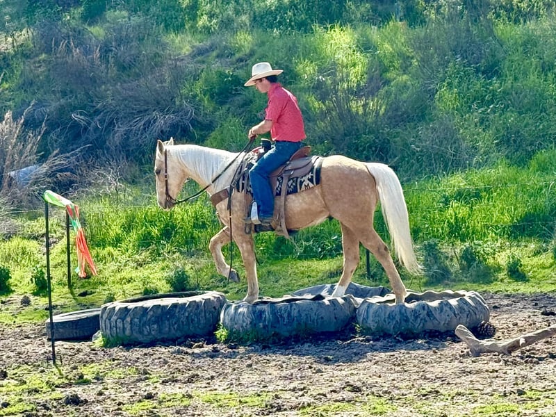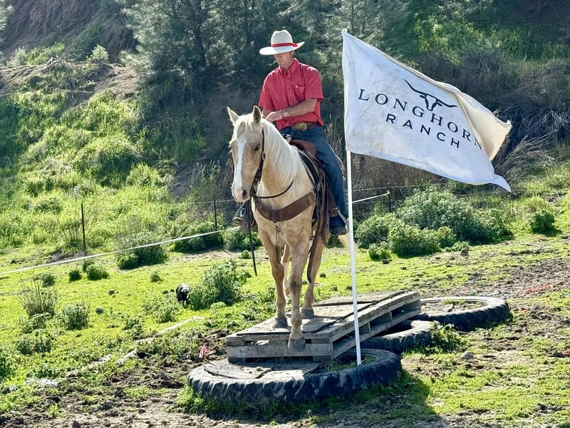 "AVAILABLE ON ONLINE HORSE AUCTION AT www DOT PlatinumEquineAuction DOT com BIDDING OPEN NOW thru SUNDAY | MARCH 15TH! *Final price will be determined on auction site* CONSIGNOR CONTACT INFO: Longhorn Ranch 831-537-1915 LOCATION: Paicines, CA APEX Not Just Gold — Solid Gold 7-Year-Old • 14.3 Hand Palomino Gelding If reliability, versatility, and style are high on your list, Apex deserves your attention. Apex is a sharp-made palomino gelding with the kind of mind and foundation that make him an asset in any program. He is honest, capable, and rides with the confidence of a horse that has been there and done the work. On the ranch, Apex is proven. He has been used for branding, gathering, doctoring, sorting, and roping outside. He handles long days, new tasks, and changing environments with a steady, willing attitude. This is not a “pretend ranch horse” — he is the real thing. Started in the heeling, Apex is ready to season. He rates cattle naturally, stays level-headed, and stops with authority. He has the feel, timing, and foundation to confidently continue progressing in the roping pen. Outside, Apex shines. On the trail, he is confident, sure-footed, and dependable. He navigates rough terrain, crosses obstacles willingly, and handles wildlife without drama. Whether you ride solo or with a group, Apex remains steady and enjoyable. In the arena, Apex is soft, supple, and broke. He travels collected, lopes smooth circles, picks up both leads, transitions cleanly, and carries a comfortable, balanced way of going. He has a nice stop, a willing backup, and a responsive handle. Apex has been well exposed to flags, tarps, pool noodles, balls, and obstacles. Ride him down the road, haul him to new places, or put him to work — he stays consistent and dependable. Around the barn, Apex is exactly what you want. He tacks up quietly, stands patiently tied, hauls well, and maintains a calm, respectful demeanor in the stall. He is easy to handle, easy to ride, and easy to appreciate. Apex is the kind of gelding that fits where you need him: Ranch-proven Trail-solid Started in the heeling Soft and broke in the arena Obstacle-experienced Gentle and good-minded Located in Paicines, California Dina Longhorn Ranch 831-537-1915 Shipping available anywhere!