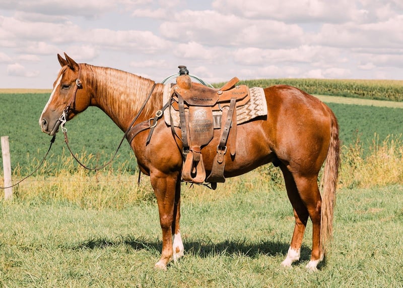 Steve O, hongre AQHA de 7 ans mesurant 1,52 m (15 mains), de couleur sorrel