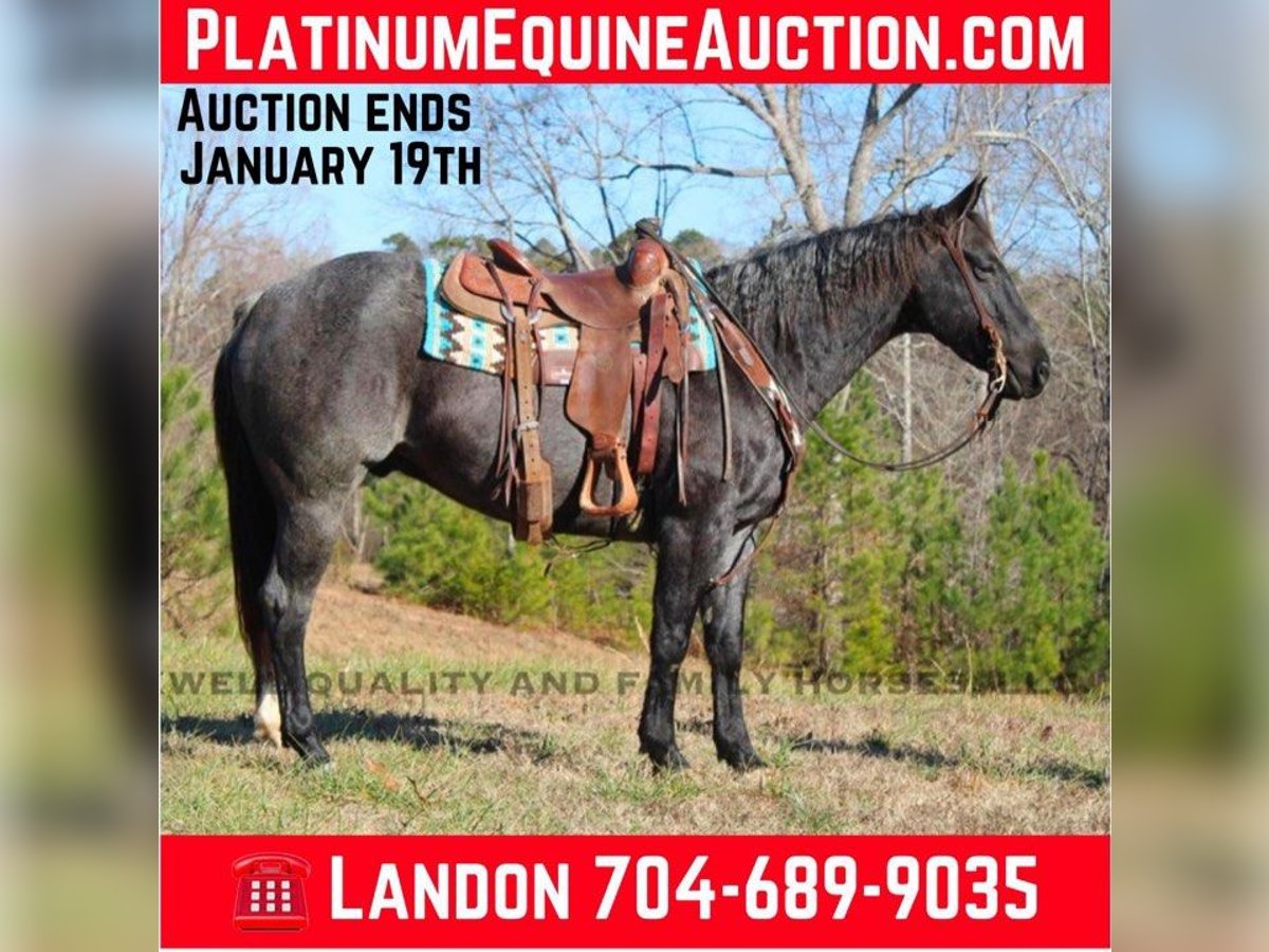 ONLINE AUCTION Place your bids at www.PlatinumEquineAuction.com Starting Bid $3500 Auction ends January 19th, 2025 Need a new saddle? Check out White Rock Saddles on our website or Facebook! Samson is a 6 year old, grade quarter horse, gelding that stands 15h, he will weigh around 1200lbs and is that beautiful Blue Roan color that everyone loves! With an easy handle and a personality to make you fall in love. He came from a small local grow yard in Oklahoma where he worked gates and performed maintenance tasks. He’s safe and easy going with a one step rocking chair lope. Samson doesn’t get in a hurry, making him the perfect trail mount. We have taken him across local trails where he does fantastic with a group or alone. Put him where you want him in the front or the back, he will take care of you. Easy to catch and load, does well with his feet and is very in your pocket. Samson has a one hand neck rein and is absolutely broke. Watch his video and give us a call for more info! Located in Cherryville, NC with shipping available anywhere in the US. Conact Maxwell Quality & Family Horses Landon 704-689-9035. ONLINE AUCTION Place your bids at www.PlatinumEquineAuction.com Starting Bid $3500 Auction ends January 19th, 2025 Need a new saddle? Check out White Rock Saddles on our website or Facebook!