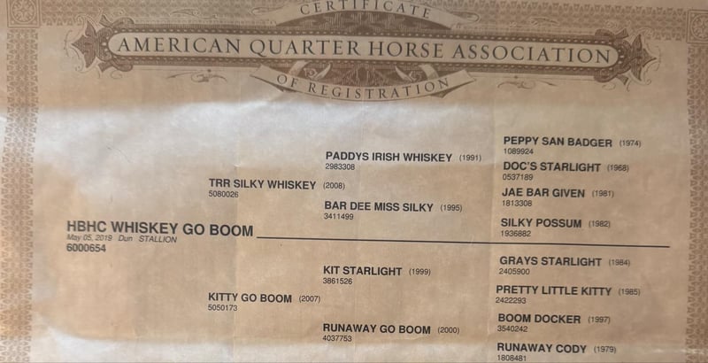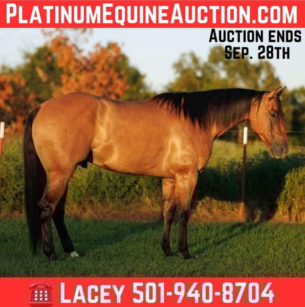 ONLINE AUCTION Place your bids at www.PlatinumEquineAuction.com Starting Bid $3500 Auction ends September 28th, 2025 Need a new saddle? Check out White Rock Saddles on our website or Facebook HBHC Whiskey Go Boom, a 2019 dun gelding standing 15.1 hands, is as handsome as they come and built to last. With his golden coat, black points, strong hip, and bright, kind expression, he carries all the eye appeal you’d expect from a dun gelding backed by proven genetics. His pedigree ties him to some of the greatest names in the Quarter Horse world, and it shows in both his ability and disposition. By TRR Silky Whiskey, a son of Paddys Irish Whiskey (by the legendary Peppy San Badger) and out of Bar Dee Miss Silky, Boomer carries cow sense and trainability in his blood. On the bottom side, his dam Kitty Go Boom is by Kit Starlight (son of the great Grays Starlight) and out of Runaway Go Boom, adding even more proven cow horse and versatility to his pedigree. With this combination of Paddys Irish Whiskey and Grays Starlight, it’s no surprise Boomer shows the brains, handle, and willing nature he does today. Boomer’s disposition is steady, kind, and dependable. He’s been used on the ranch, where he’s proven himself through real-world situations and all kinds of terrain. He’s also been used at the sale barn, gaining experience in high-traffic, noisy environments where a quiet mind is key. Wherever you take him, Boomer meets the job with confidence and maturity. Under saddle, he shows off his fancy handle with ease. He catches both leads, stays soft and collected in the bridle, and can be ridden bridleless with total honesty. His big stop, classy turnaround, and responsiveness make him fun to ride, whether you’re in the arena, out checking cattle, or crossing obstacles on the trail. On the ground, Boomer is as polite as they come. He’s easy to catch, saddle, bridle, load, and bathe, with respectful manners that make him a pleasure to have around. He gets along well with others, enjoys people, and is always straightforward to handle. Boomer is the whole package — pedigree, looks, handle, and a mind you can count on. With his royal bloodlines, gentle nature, and all-around experience, he’s a seasoned gelding that’s already proven himself dependable, broke, and ready to step into any job with style! Located in Quitman, AR. Call Lacey Wilf 501-940-8704 with any questions. ONLINE AUCTION Place your bids at www.PlatinumEquineAuction.com Starting Bid $3500 Auction ends September 28th, 2025 Need a new saddle? Check out White Rock Saddles on our website or Facebook