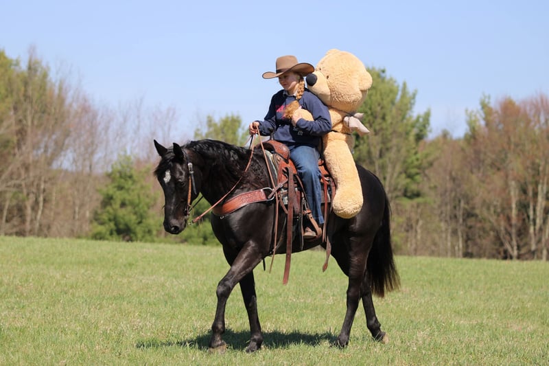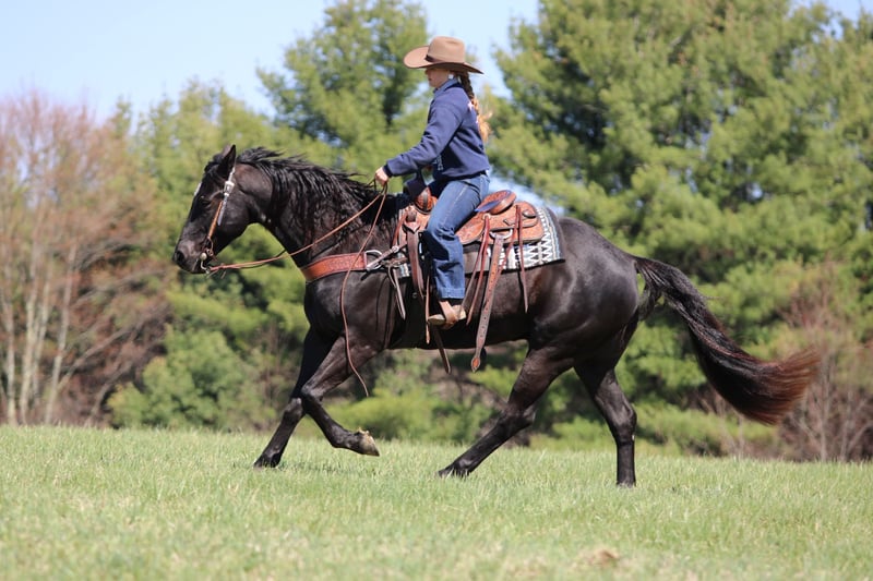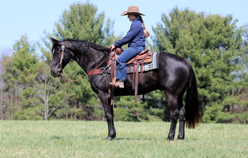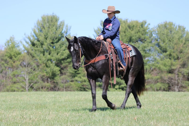 ⚜️𝐭𝐡𝐞 𝓔𝓵𝓲𝓽𝓮 𝐒𝐩𝐫𝐢𝐧𝐠 𝐂𝐥𝐚𝐬𝐬𝐢𝐜⚜️ Happening now thru MONDAY | APRIL 20th - Available EXCLUSIVELY on HorseBid's website! For more details and to register visit: www.Horsebid.com CONSIGNOR CONTACT: LT Equine 724-664-5327 LOCATION: Miola, PA BREED: AQHA REGISTERED: Yes REGISTERED NAME: Shining Sak Em San COLOR: Black HEIGHT: 15.1 AGE: 7 GENDER: Gelding Shining Sak Em San, affectionately known as “Shiner,” is a striking black AQHA registered gelding whose lineage traces back to the great Shining Spark. Coming 7 years old and standing just over 15.1 hands, Shiner is the kind of horse that is a blessing to have around. Shiner is truly one of the nicest trail horses I’ve had the pleasure to own and ride. Whether heading out alone or in a group, he is steady, willing, and confident. He is the same horse whether he’s leading the pack or quietly following along behind. Shiner navigates water crossings, rocky terrain, and uneven ground with ease, always maintaining a comfortable and sure-footed cadence. He has been my go-to horse for both myself and guests, the kind you can rely on to take care of his rider. In the arena, Shiner is just as enjoyable. He carries a nice neck rein, moves willingly off leg pressure, and stays soft in the bridle with a collected headset. His trot is smooth and easy to sit, and he has a slow, comfortable one-step lope that makes him a pleasure for any rider. He has also been exposed to cattle work, adding to his versatility. Shiner is beginner-friendly while still being enjoyable and responsive for more experienced riders. He is the same dependable horse whether ridden daily or given time off—he does not require constant riding to stay gentle and honest. On the ground, Shiner is as kind as they come. He has excellent manners, stands quietly tied, and is easy to catch. He is relaxed in a stall, gets along well with pasture mates, and handles all the basics with ease—bathing, grooming, saddling, and bridling. He picks up all four feet without issue, loads and hauls quietly, easy to work with and have around. Shiner sells with a current health exam, fresh coggins. If you’re looking for a kind, honest gelding that you can trust to take care of you on the trail and enjoy in the arena, Shiner is one you won’t want to miss.