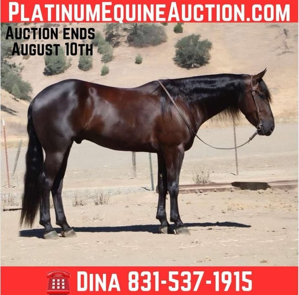 ONLINE AUCTION Place your bids at www.PlatinumEquineAuction.com Starting Bid $3500 Auction ends August 10th, 2025 Need a new saddle? Check out White Rock Saddles on our website or Facebook If good looks, charm, and talent were crimes… Arson would be guilty on all counts.! This jet-black gelding is 6 years old, stands 15.1 hands, and moves like he’s floating on air. In the arena, he trots soft and low, lopes off like he read your mind, and slides into a smooth stop that’ll make you look like you meant to do that. He’s got the kind of style and handle that turns heads—and makes you want to keep riding long after the work’s done. Arson is also a total sweetheart. He’ll walk up to you in the pasture like an old friend and follow you around like you’ve got cookies in your pocket (even if you don’t). He ties, clips, bathes, loads, and stands quiet like a true gentleman—no drama, no fuss, no problem. Hit the trails, and this guy shines. Water, brush, bridges, flags, traffic—he’s seen it all and doesn’t blink. Go out alone or with a group, he doesn’t care—he’s confident, calm, and downright cool. Need a horse that’s more than just pretty? Arson’s got the goods. He’s been used to gather cattle, he’s ranch-savvy and handy, and has the brain and build to go on to be a rope horse, barrel horse, or even a show horse. He’s the kind of horse that makes you wonder why you wasted time looking at anything else. He stalls or pastures well, fits into any program, and is just flat-out fun to be around. Call Dina at Longhorn Ranch: 831-537-1915 Located in Paicines< CA. If you’re ready for a horse that looks like a million bucks and acts like he already owns the place… Arson is your guy. ONLINE AUCTION Place your bids at www.PlatinumEquineAuction.com Starting Bid $3500 Auction ends August 10th, 2025 Need a new saddle? Check out White Rock Saddles on our website or Facebook