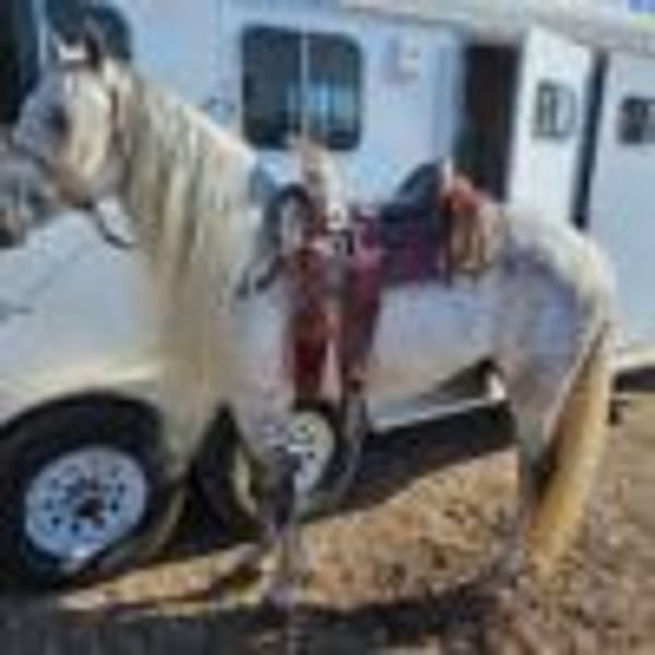 ONLINE VEILING Bied mee via www.PlatinumEquineAuction.com Startbod $3500 Veiling sluit op 17 augustus 2025 Ben je op zoek naar een nieuw zadel? Kijk dan eens bij White Rock Saddles op onze website of Facebook Topo is een prachtige 6-jarige hengst van 15,2 hh, een Quarter Horse cross. Hij heeft een schitterende gevlekte grijze kleur met een lange manen en staart. Hij beschikt over een uitstekende conformatie en een sterk, atletisch gebouwd lichaam. Hij is zachtaardig en respectvol op de grond. Hij kan worden vastgebonden, geleid, staat stil voor grooming en hoefsmid. Perfect voor parades, shows, feesten en andere evenementen, met potentieel voor ranchwerk, trailritten of fokkerij. Gezond, sound en goed verzorgd, up-to-date met vaccinaties, ontworming en hoefbeslag. Gevestigd in Alhambra, CA. Neem contact op met Carlos Perez via 562-456-7730 voor vragen. ONLINE VEILING Bied mee via www.PlatinumEquineAuction.com Startbod $3500 Veiling sluit op 17 augustus 2025 Ben je op zoek naar een nieuw zadel? Kijk dan eens bij White Rock Saddles op onze website of Facebook