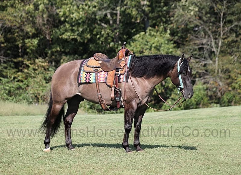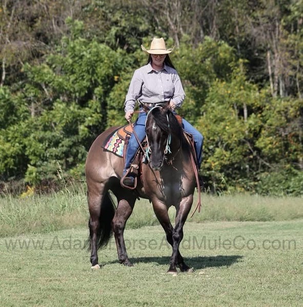 Roman is consigned to the Cowgirls Cadillacs sale in Wickenburg, AZ on February 21-22, 2025. Make plans to attend, you can bid in person or bid online. You can preview any horse in Mt. Vernon, KY before they head to Wickenburg, AZ or preview them when they arrive at the sale. Shipping can be arranged to any state or Canada. You can get more info about the sale at www.CowgirlCadillacs.com THESE Horses ARE NOT AVALAIBLE FOR PRIVATE PURCHASE According to a Google search, “a Roman Soldier was expected to show courage, respect, loyalty, competence and effort…” after riding MDP Roman Crown you see that he really lives up to his name! Roman like the actors in the movies who have played Roman Soliders, has all of big muscles, flowing locks and presence that commands attention! He is a well built 15.2hh, 2019 model, registered AQHA, Grullo Gelding. Roman with his tough guy name is actually a teddy bear on the inside and wants to be anyone’s best friend. Roman much like those soldiers is a one man army that can do anything from slow easy trail rides to pasture roping/doctoring, he can push the cows around and hold any that you tie to the horn. If you just want to enjoy those long slow miles on the trails with your friends, Roman is perfectly content to just mosey along. He will cross creeks, deadfall, rough rocky areas and scale steep slopes. Roman is one hand broke, he reins around with ease, has a good stop and lopes very nice circles on the correct lead. He would transition into the Ranch Riding classes with ease! Roman is easy to ride and is safe for all levels whether you use him daily or once a month. Just relax and enjoy the ride because Roman is standing guard for you!