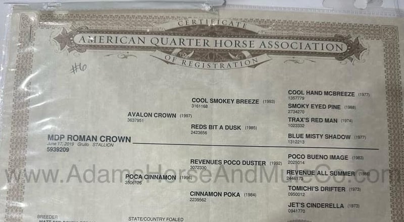 Roman jest wystawiony na sprzedaż Cowgirls Cadillacs w Wickenburg, AZ w dniach 21-22 lutego 2025 roku. Zaplanuj udział, możesz licytować osobiście lub online. Możesz obejrzeć dowolnego konia w Mt. Vernon, KY, zanim pojedzie do Wickenburg, AZ lub obejrzeć go po przybyciu na aukcję. Istnieje możliwość zorganizowania wysyłki do dowolnego stanu lub Kanady. Więcej informacji na temat sprzedaży można znaleźć na stronie www.CowgirlCadillacs.com. te konie nie są dostępne do zakupu prywatnego Według wyszukiwarki Google "od rzymskiego żołnierza oczekiwano odwagi, szacunku, lojalności, kompetencji i wysiłku..." Po jeździe na MDP Roman Crown widać, że naprawdę zasługuje na swoje imię! Roman, podobnie jak aktorzy w filmach, którzy grali rzymskich żołnierzy, ma wszystkie duże mięśnie, płynne zamki i prezencję, która przyciąga uwagę! To dobrze zbudowany wałach o masie 15,2 Gh, model 2019, zarejestrowany jako AQHA, Grullo Gelding. Roman ze swoim imieniem twardziela jest w rzeczywistości pluszowym misiem w środku i chce być najlepszym przyjacielem każdego. Roman, podobnie jak ci żołnierze, jest jednoosobową armią, która może zrobić wszystko, od powolnych, łatwych przejażdżek po pastwiskach, może pchać krowy i trzymać każdą, którą przywiążesz do rogu. Jeśli chcesz po prostu cieszyć się długimi, powolnymi kilometrami na szlakach z przyjaciółmi, Roman jest całkowicie zadowolony z tego, że po prostu się porusza. Przejdzie przez strumienie, martwe pole, nierówne skaliste obszary i pokona strome zbocza. Roman jest łamany jedną ręką, z łatwością jeździ w kółko, ma dobre zatrzymanie i bardzo ładnie okrąża na prawidłowej smyczy. Z łatwością przejdzie do klasy Ranch Riding! Roman jest łatwy do jazdy i bezpieczny dla wszystkich poziomów, niezależnie od tego, czy używasz go codziennie, czy raz w miesiącu. Po prostu zrelaksuj się i ciesz się jazdą, ponieważ Roman stoi na straży!
