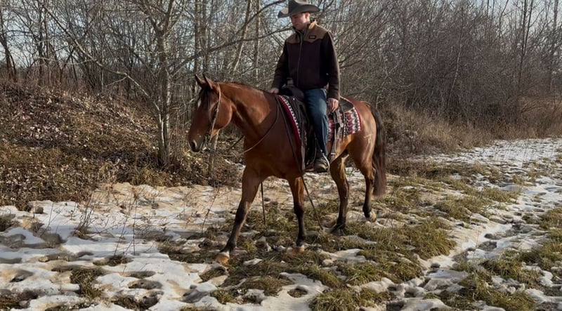 𝐉𝐀𝐍𝐔𝐀𝐑𝐘 ⭐️𝑨𝒍𝒍 𝑺𝒕𝒂𝒓 𝑳𝒊𝒏𝒆𝒖𝒑⭐️ Happening now thru MONDAY | JANUARY 26th - Available EXCLUSIVELY on HorseBid's website! For more details and to register visit: www.Horsebid.com CONSIGNOR CONTACT: Bill Thomas Performance Horses 989-239-3141 LOCATION: Saginaw, MI BREED: AQHA REGISTERED: Yes REGISTERED NAME: No Regretts COLOR: Bay HEIGHT: 15.3 AGE: 7 GENDER: Gelding • Looking for your next reining & ranch horse, or trail riding partner? • Meet No Regretts (Rhett), offered for your consideration. Rhett is a 15:3hh, 2019 AQHA / FQHR / NRHA bay gelding with terrific bloodlines, looking for his next partner! • Rhett’s pedigree traces directly to NRHA money earners and elite reiners. He is by Great King Jack (Great King Pine x Great Red Jackie) out of Smokin Gabby Gablian. Great King Jack has over $47k in NRHA earnings and 30.5 AQHA total performance points.His foals collectively have earned over $73k in NRHA earnings and 22.5 points, AQHA Great King Jack is an NRHA world champion, an NRHA reserve world champion, and a FQHR world champion in reining and the reined cow horse. He has produced an AQHA Quarter Congress world champion and a NRHA futurity reserve champion as well. • Great King Pine has over $157k in NRHA earnings. Great Red Jackie’s foals collectively earned over $148k in NRHA earnings as well. Two of her foals are world NRHA champions. • Rhett was trained by NRHA trainer Bill Thomas Jr. from Bill Thomas Performance Horses. Bill has won world championships from the 2010 American Ranch Horse Association, (ARHA), 2012 Pinto Horse Association (PHA), and the 2014 National Reining Horse Association (NRHA). Bill is also the proud owner and showman of Great King Jack, Rhett’s sire. Rhett even has Bill’s brand on his left hind leg! • Rhett has all the eye appeal and talent for the show pen and knows all reining maneuvers. He has deep sliding stops, does flying lead changes, and has stylish spins. His speed control with collection is well dialed in - speeding up or slowing down when asked. Rhett has excellent body control too, moving his hips or shoulders when cued. His handle is soft yet precise to your seat and leg, allowing him to stay low, relaxed, and composed. • Rhett does well in the ranch too with his strong foundation and responsiveness. He has been around cattle, dummy roped, gone over bridges, and has dragged logs and barrels. You can bull whip off his back and hang a tarp over him. He has seen it all from riding down the road and has been through traffic. He’s been on trail rides and he loves it. He is easily maintained and would be safe for any level rider. • Rhett is a gentleman for the vet and farrier and has no issue with being hot shod. He is UTD on his Coggins, vet, farrier, sheath, dewormer, and dental. Rhett has a club foot on his front left. It has been thoroughly vet checked and X-rayed, and the vet cleared him for long-term reining use. He has had no performance or soundness issues. He is maintained with front shoes. PPE’s welcome at buyer’s expense. • His ground manners are impeccable – respectful, easy to handle, and uncomplicated in daily care. No bad habits or vices. He loads, ties, and cross ties with ease. Rhett stands quietly to saddle, bridle, groom, and pick out his hooves. He gets along well with all the horses in his pasture and is easy to catch. • Selling due to no fault of his own – his owner’s family is growing, and she no longer has the time he deserves. Rhett is currently in training with and located at Bill Thomas Performance Horses in Saginaw, MI. • If you are looking for a talented, versatile, and well-broke gelding with eye appeal to match, Rhett is the one for you. He is an honest gelding who truly aims to please. We welcome you to come spend the day with him – we’re excited to show him off! Shipping is available to anywhere in the US. If you have any questions or would like to meet Rhett, please contact Bill Thomas at 989-239-3141. Or Jared at 989-418 8290.