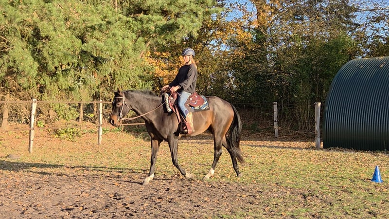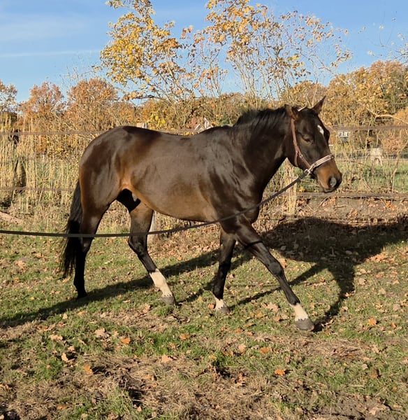 With a heavy heart, I am selling my 6-year-old Quarter Horse gelding, Schoko. Schoko is approximately 16.1 hands high and has been ridden under saddle since the beginning of the year. He was gently and carefully backed late, taking his growth into consideration. We have worked a lot from the ground: he is familiar with lunging, double lunging, groundwork with a bitless bridle, free jumping in the round pen, pole work, balance training on the gymnastics mat, and clicker training with a signal word. He is very sensitive and responds subtly to the rider’s body language. Schoko is easy to load and travel with. He requires an experienced rider who exudes calmness and confidence, as he can still be easily distracted by external stimuli. His movements are soft and comfortable to sit. He accepts the bit well and is familiar with all basic gaits under saddle, as well as initial lateral work in walk. If gradually introduced to situations like clinics or small competitions, Schoko can certainly live up to his pedigree. He is an all-rounder with bloodlines including Aint it the Blues x Capuchino Bay. Currently, Schoko is kept in a paddock with a shelter but is also accustomed to being stabled with daytime turnout. Unfortunately, he has a pollen allergy that manifests as a summer eczema. With proper skin care and a diet change to support his gut health, his condition has significantly improved. Schoko is available for sale with complete tack upon request.