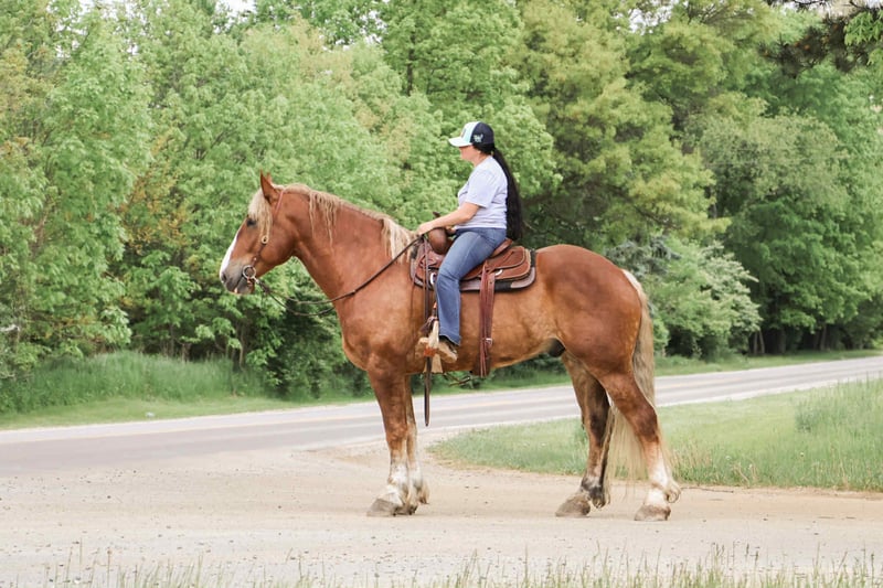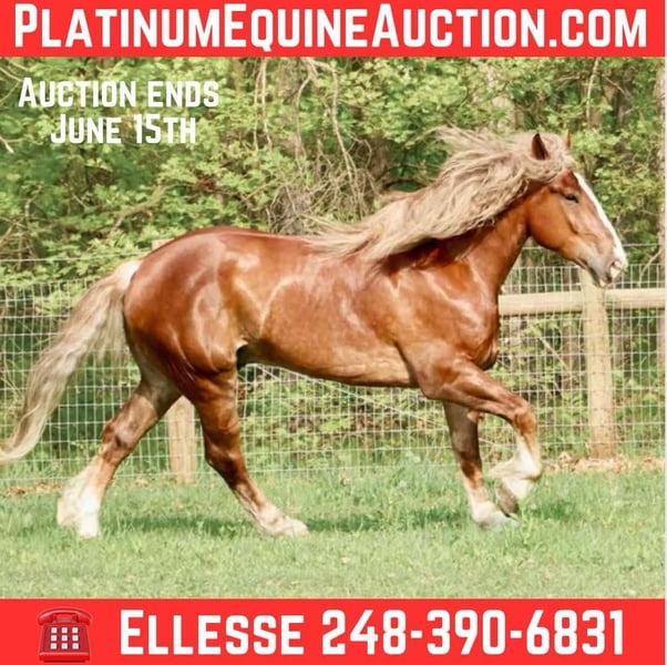 ONLINE AUCTION Place your bids at www.PlatinumEquineAuction.com Starting Bid $3500 Auction ends June 15th, 2025 Need a new saddle? Check out White Rock Saddles on our website or Facebook! Blackstone’s Kernel, or Kernel as we call him around the farm is the kind of horse that turns heads wherever he goes. This stunning boy is 6-years old, and stands 16.3hh! He is silver dapple in color with a flaxen mane and tail! He is a Belgian Gypsy Vanner cross gelding who is remarkable in every way. He has deep dapples when the sun shines on him and has a natural wavey mane and tail. Kernel is a powerhouse of strength, versatility, and athleticism. For a horse of his size, kernel moves with incredible grace and fluidity, making him not only a reliable mount but also an athlete in his own right. Whether you are riding Western, English, over fences or bareback, kernel delivers an exceptional experience, seamlessly transitioning between disciplines with ease. He knows all liberty work such as how to lay down, sit and even say yes and no. He is 100% a people loving horse who will greet you at the gate every day!! What truly makes Kernel stand out is his “been there, done that” attitude. He is the definition of a bombproof horse—absolutely safe in any environment. Kernel has been ridden on state roads, there’s not a truck too big to scare him! in the woods, open fields, and has even gone on a shopping trip to our local farm store! His beautiful chocolate color blonde mane and tail and flowing feathers capture everyone’s attention! One glance into his big brown eyes will steal your heart. Out on the trails, Kernels calm, and steady nature shines. Water crossings, tarps, bridges and other common obstacles do not phase him in the slightest. His even temperament makes him an ideal horse for beginners who need a forgiving partner, while his experience and smooth gaits make him just as enjoyable for advanced riders. Kernel is the rare horse that adapts to his rider’s needs, making him a perfect fit for anyone from novice to seasoned equestrians, from small kids to savvy teens and timid adults he will take care of you! And speaking of smoothness, Kernels three gaits are simply unbeatable. His walk, trot, and canter are incredibly fluid and comfortable, making him perfect for all-day rides without leaving you sore. Whether you are working in the arena or exploring the trails, kernels athleticism and stamina ensure he will keep going strong, mile after mile. In short, Kernel is the full package: strikingly beautiful, strong, athletic, and most importantly, safe. If you are looking for a versatile horse that excels in riding in a variety of disciplines from English to western, jumping cross country in the arena or even in harness he’s done it! Kernel is the perfect partner. He is ready to take on anything, whether you are a beginner looking for safety or an experienced rider seeking a smooth, dependable horse for long adventures. Kernel lives in Howell, MI 48855. Please call or text Ellesse Schwartz at 248-390-6831 for more information. ONLINE AUCTION Place your bids at www.PlatinumEquineAuction.com Starting Bid $3500 Auction ends June 15th, 2025 Need a new saddle? Check out White Rock Saddles on our website or Facebook!