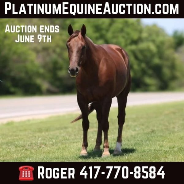 ONLINE AUCTION Place your bids at www.PlatinumEquineAuction.com Starting Bid $3500 Auction ends June 9th, 2024 Need a new saddle? Check out White Rock Saddles on our website or Facebook! “Zombie” is a 5 yo grade gelding, standing 14.1 hh tall. Zombie has so much natural talent and heart. If you want a true gentleman to take you out on the trails or out in the pasture to get a job done he is a great fit! We have roped calves out in the pasture on him, gathered cattle, sorted cattle, roped the dummy, ponied colts with Zombie and went on countless miles of trails over rough terrain, brushy timber, crossing ditches and creeks. He is sure handy and reliable to get the job done. We have even used him to drag go kart out when it was stuck. No matter what the job is Zombie will give you his all. We appreciate the one hand handle Zombie has, making it easy to manuever out on the trails or in the arena. Zombie works nicely on a loose rein, leg pressure, spins, side passes and has a big stop. He can be ridding bareback, bridals great or you can just jump on him in just a halter. He has excellent ground manners, ties great, loads and hauls like a champ, stands for farrier, and is respectful of your space. He rides out alone, doesn’t matter if he has another horse to go with or by himself. He has been ridden along traffic, around farm equipment, atvs, 4 wheelers and dogs. He can be turned out in pasture, easy to catch or kept in a stall. He is consistently the same horse. He has never offered to buck, kick, rear or run off. Thank you for taking the time to read about Zombie and watching his video. We would love to answer any questions you have regarding him. Feel free to contact us or schedule a time to come and try him out. He is located in Bolivar, MO and shipping arrangements can be made anywhere in the US. Roger Stark 417-770-8584. ONLINE AUCTION Place your bids at www.PlatinumEquineAuction.com Starting Bid $3500 Auction ends June 9th, 2024 Need a new saddle? Check out White Rock Saddles on our website or Facebook!