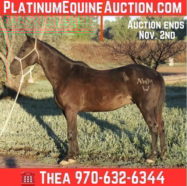 ONLINE AUCTION Place your bids at www.PlatinumEquineAuction.com Starting Bid $3500 Auction ends November 2nd, 2025 Need a new saddle? Check out White Rock Saddles on our website or Facebook Ace is a 6 year old 15.1 hand, black, stocky gelding!! Ace has a ton of miles under his belt for his age! From ranch life, checking fences, pushing cows and riding long miles to fancy work in the arena, and even some town riding!! Ace has a beautiful walk, jog, lope, a HUGE sliding stop, spin and cross over. Ace has been straight through town, handling bikes, traffic, runners and all of the town life sights without blinking. Ace is laid back and mellow and has a quiet personality- he is very respectful of your space and has great ground manners. Ace leads, loads, bathes, ties and will stand all day. He gets along with everyone out in the pasture and is the bottom of the pecking order! Located in Fort Collins, CO. Contact Thea with Dynamite Horses 970-632-6344 for further info. ONLINE AUCTION Place your bids at www.PlatinumEquineAuction.com Starting Bid $3500 Auction ends November 2nd, 2025 Need a new saddle? Check out White Rock Saddles on our website or Facebook