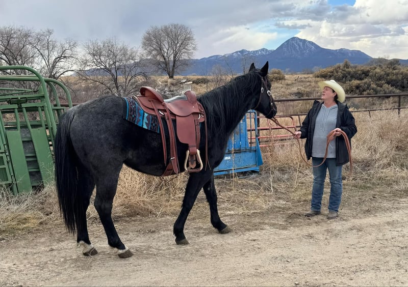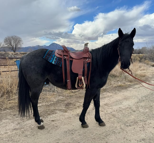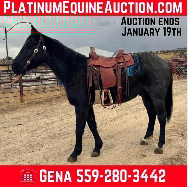 ONLINE AUCTION Place your bids at www.PlatinumEquineAuction.com Starting Bid $3500 Auction ends January 19th, 2025 Need a new saddle? Check out White Rock Saddles on our website or Facebook! Captain is 6 year old, 15.2H, Blue Roan, grade quarter horse gelding who is a very sweet and friendly horse that loves attention. He has such a great personality definitely one of a kind! He’ll be the first to meet you at the gate. He stands well for shoes. He trailers well, stands tied. He is not a beginner horse but he is started on neck reining, would be great for any job when finished. Located in Dorlores, CO. Contact Gena Gear 559-280-3442 with any questions. ONLINE AUCTION Place your bids at www.PlatinumEquineAuction.com Starting Bid $3500 Auction ends January 19th, 2025 Need a new saddle? Check out White Rock Saddles on our website or Facebook!