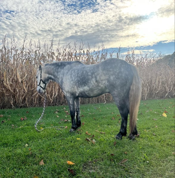 ONLINE AUCTION Place your bids at www.PlatinumEquineAuction.com Starting Bid $3500 Auction ends November 17th, 2024 Need a new saddle? Check out White Rock Saddles on our website or Facebook! Pistol is a 6 year-old, 12h, Welsh Cross gelding. He is a very handsome gentleman, with a very easy-going demeanor. He is trained to ride and has had past experience driving. He will put in a full days work and keep up with the big horses. He has been on the road, worked other horses, stands to saddle and stands for a bath, He is a pony for any young cowboy or cowgirl. For any further information call Laramie Fox 989-802-1499 Located in Oakley, MI. ONLINE AUCTION Place your bids at www.PlatinumEquineAuction.com Starting Bid $3500 Auction ends November 17th, 2024 Need a new saddle? Check out White Rock Saddles on our website or Facebook!