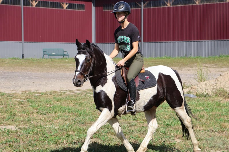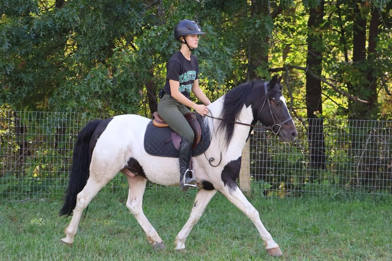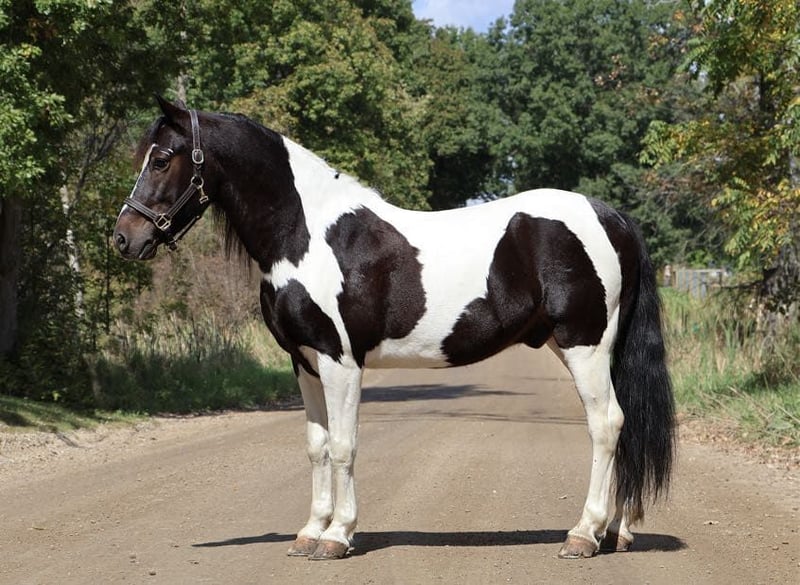 ONLINE AUCTION Place your bids at www.PlatinumEquineAuction.com Starting Bid $3500 Auction ends November 17th, 2024 Need a new saddle? Check out White Rock Saddles on our website or Facebook! Meet Barney! Here’s a kid’s pony deluxe. This little guy has thousands of hours being ridden, driven, and being handled by kids. If your kids can dream it up, I’m betting Barney has been asked to do it. Barney is a 6 year old black and white paint pony who stands a stout 13.2hh. He is beautifully marked with a gorgeous mane and tail! He’s just the perfect size for the little ones to groom, tack, and love on but he’s stocky enough for the big kiddos and small adults to hop on as well. He is a quiet natured guy who’s very simple to walk, trot, and will move into a canter with a kiss. He knows both leads, and even swaps his leads when asked. He is a kind and patient teacher. Kids can catch, lead, and groom him alone. This little guy comes with a resume a mile long. He has worked on a ranch out west. He’s been asked to round up and rope cows twice his size and he will gladly get the job done. Barney is also no stranger to the trails. He’s been in deep water, heavily wooded areas, seen wildlife, rough terrain and he is game to take his riders where ever they want to go. Barney has also worked at an English riding barn and has taught many kids the ropes of arena work. He will jump full courses as well. He jumps as cute as they come every time. Hes competed in local shows. He is also very well broke to drive. He’s been on the roads, in traffic, and used around the farm. He’s not one to shy from much of anything. Barney has been in costume parades. This is a hard pony to find as he’s just as broke as any big horse but comes in a pint sized package. He is also awesome in a back yard and will ride around swing sets, down the drive way, around kids toys, or whatever other bright ideas your kids may come up with. He would be a perfect addition to any back yard, ranch, or lesson program! This pony has irreplaceable mileage and experience! Enjoy the video he speaks for him self! Barney lives in Howell, MI 48855. Call or text Ellesse Schwartz at 248-390-6831 with any questions. ONLINE AUCTION Place your bids at www.PlatinumEquineAuction.com Starting Bid $3500 Auction ends November 17th, 2024 Need a new saddle? Check out White Rock Saddles on our website or Facebook!