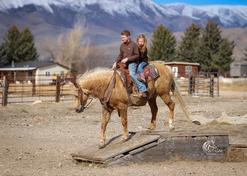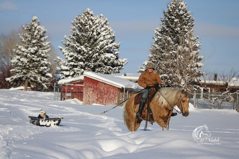 ℳ𝒶𝓇𝒸𝒽 ♦️𝐑𝐈𝐃𝐄𝐑'𝐒 𝐂𝐇𝐎𝐈𝐂𝐄♦️ Happening now thru MONDAY | MARCH 9th - Available EXCLUSIVELY on HorseBid's website! For more details and to register visit: www.Horsebid.com CONSIGNOR CONTACT: McNabb Livestock LLC 307-250-0900 LOCATION: Cody, Wy BREED: Quarter Pony REGISTERED: No COLOR: Palomino HEIGHT: 13.3 AGE: 8 GENDER: Gelding Pudding is a beautiful golden palomino gelding that has truly done a little bit of everything. From pulling kids on a sled through the winter snow to helping with spring branding and fall cattle gathering, he has proven himself to be a dependable and versatile ranch partner. We have owned him for a year and a half and he has been tried, true and proven in all seasons, terrain and weather. He has tracked and dragged the roping dummy, worked cattle, and logged many miles in the mountains. Pudding is sure-footed, confident, and goes wherever he is pointed — crossing creeks, traveling through brush, and staying steady on the trail. Whether riding out alone or with a group, he is quiet, willing, and dependable in any position. One of Pudding’s best qualities is his consistency. You can give him time off and saddle him up knowing he will be the same horse every ride. He is gentle, easy to catch, and enjoys attention, making him a favorite around the barn and safe for the whole family to enjoy. In the arena, Pudding picks up his leads, lopes nice circles, has a good stop, and is smooth and comfortable at all gaits. He carries his head leave and is easy to ride. He gets along well in a mixed herd and is accustomed to all kinds of livestock including cattle, pigs, llamas, goats, and poultry. He stands well for the farrier, loads and backs out of the trailer easily, and hauls quietly. Pudding is up to date on vaccinations and age-verified by a veterinarian. PPEs welcome. We are glad to help arrange transportation anywhere. We have a list of reliable haulers that we can coordinate with and we will be glad to keep him at our place until transportation can be arranged. For more information call 307-250-0900.