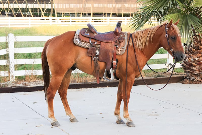 ONLINE AUCTION Place your bids at www.PlatinumEquineAuction.com Starting Bid $3500 Auction ends October 6th, 2024 Need a new saddle? Check out White Rock Saddles on our website or Facebook! Check out Artax: A Versatile and Charismatic Gelding. Meet Artax, a 6-year-old gelding who commands attention with his striking chocolate coat, flaxen mane, and kind eyes. Standing at just over 14hh, he has a compact, athletic build and a charming presence that sets him apart. Artax boasts an abundance of personality, coupled with a curious and adventurous spirit that makes him a joy to be around. He is incredibly intelligent and eager to please, taking to trail courses with ease and confidence. He navigates obstacles such as bridges, tarps, flags, logs, tires, water, and more with poise and grace. This gelding has a superb foundation in his training, with excellent flexion, and precise maneuverability. He’s on the more woah side but will go when asked. He turns around, stops, and backs on command, and moves smoothly through the walk, trot, and lope. Artax is a versatile partner who can excel in a variety of disciplines, from trail riding to working cow horse classes. Artax is a gentleman to handle, loading and hauling quietly, standing tied patiently, and accepting saddling and bridling without fuss. He is well-behaved for farrier care and has a smart, shiny coat that turns heads. He adores attention and bathes, although he does enjoy a good roll afterwards! Located in Valley Springs, CA, Artax is seeking an active partner who will appreciate his talent, personality, and loving nature. Whether you’re looking to dabble in various disciplines or focus on one, Artax has the potential and desire to shine. He should fit just about anyone in your family, bringing them nothing but joy and fun! For more information, please contact Breeanna with Cross B Horses 925-783-8655. ONLINE AUCTION Place your bids at www.PlatinumEquineAuction.com Starting Bid $3500 Auction ends October 6th, 2024 Need a new saddle? Check out White Rock Saddles on our website or Facebook!