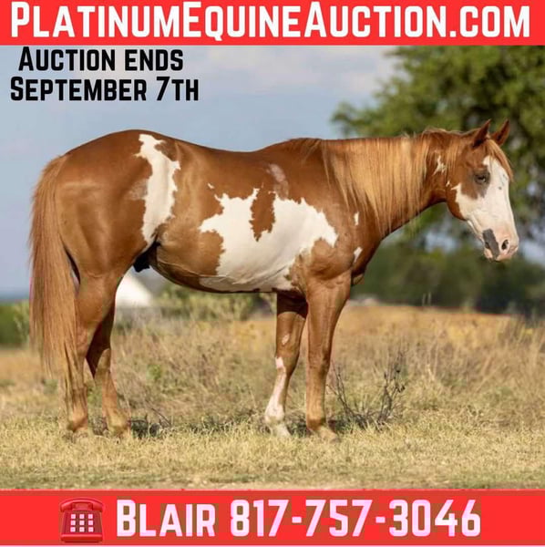 ONLINE AUCTION Place your bids at www.PlatinumEquineAuction.com Starting Bid $3500 Auction ends September 7th, 2025 Need a new saddle? Check out White Rock Saddles on our website or Facebook Alvin is a 14H, 7 yr old sorrel and white paint gelding. Not only is he as cute as they come, he’s so EXTREMELY gentle! Anyone that can hold the reins can ride him. He’s spent his life as a family horse and was rode all over by little kids! He’s seen A LOT for his age and acts like a seasoned veteran with all things. Alvin is NOT spooky in the slightest, has ZERO buck, bolt or rear and is safe and gentle from the ground to the saddle! He’s EASY to operate, just point and go! He’ll neck rein with ease, goes the speed you ask when you ask it and stop great! He’s the PRIME aged gelding everyone is looking for. It’s not often we see bombproof, absolutely honest, gentle, sweet natured horses that can take care of anyone under the age 10! Alvin is an absolute doll and has one of the kindest personalities. He really wants to please and he loves attention! He’s one that will stand tied all day while your little kids pampers him. He’s ready to go on to be someone’s next trail partner, beginner horse, lesson horse or even prospect! He really wants to use himself correctly and with some training, he would make an awesome heel horse or calf horse prospect. Alvin is truly a rare find and to top it off, he’s absolutely gorgeous! He checks every single box! Don’t miss this sweet guy! More pics and videos on his website page at northtexashorsecompany.com/alvin. Please call Blair with North Texas Horse Company for more info at 817-757-3046. We are located in Weatherford, TX and can help arrange affordable shipping to anyone!! ONLINE AUCTION Place your bids at www.PlatinumEquineAuction.com Starting Bid $3500 Auction ends September 7th, 2025 Need a new saddle? Check out White Rock Saddles on our website or Facebook