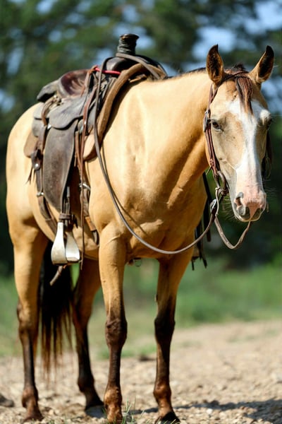 ONLINE AUCTION Place your bids at www.PlatinumEquineAuction.com Starting Bid $3500 Auction ends September 7th, 2025 Need a new saddle? Check out White Rock Saddles on our website or Facebook Lady the 7-Year-Old Buckskin Mare – And the total package. 14.2 HH | Safe • Broke • Versatile • 100% Sound. This 7-year-old grade buckskin mare checks all the boxes. Standing a handy 14.2 hands high, she’s been a reliable go-to horse at the sale barn, where she’s spent her days pushing back cattle and getting the job done right. Whether you’re looking to head, heel, breakaway, tie down calves, or catch anything out in the pasture, this mare is more than capable. She’s broke the right way—soft in the bridle, responsive in her body, and she stays that way whether you ride her every day or give her ten months off. No tune-ups needed. Quiet, safe, and gentle for just about anyone to ride, she’s a solid-minded mare with a willing heart and no nonsense. She’s the kind you can trust to take care of you or your family, and she’ll go to work when asked without hesitation. 100% sound with no vices or issues. If you’re looking for a dependable, all-around mare with the looks to match her talent, this buckskin is the real deal. Call AM Equine Alexis 660-438-0306 for more information. Located in Cole Camp, MO. ONLINE AUCTION Place your bids at www.PlatinumEquineAuction.com Starting Bid $3500 Auction ends September 7th, 2025 Need a new saddle? Check out White Rock Saddles on our website or Facebook