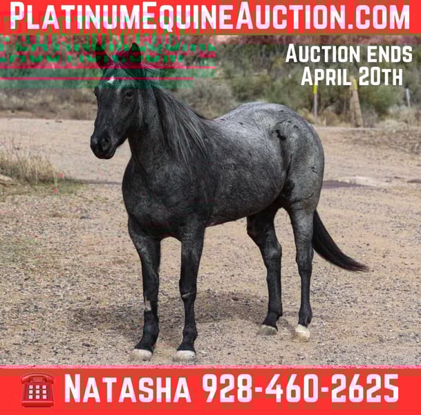 ONLINE AUCTION Place your bids at www.PlatinumEquineAuction.com Starting Bid $3500 Auction ends April 20th, 2025 Need a new saddle? Check out White Rock Saddles on our website or Facebook! GBP Miss Blue Cosmo aka “Cosmo” is a 2018 model AQHA registered mare standing 14.3hh. Cosmo is just as gentle and sweet as she is gorgeous!! This magnificent mare is the true definition of gentle, safe, well-mannered, in your pocket, and is an absolute sweetheart!! Whether you’re looking for a horse for the whole family to hit the trails, a solid broke mount to go do a long days work on, or a smooth ride to play around in the arena Cosmo is your gal!! Cosmo has been used around ranches her whole life, making her very experienced and versatile! Cruise on down the trail with ease! Cosmo will go absolutely anywhere you point her, through rough rocky country, steep slippery slopes, thick brush, flowing waters, busy streets of town, you name it and Cosmo will go on through it without batting an eye and surefooted as can be! Cosmo is not only great to ride outside, she’s an absolute blast in the arena as well! Cosmo will walk, trot, and lope both ways with ease. Smoothly pick up both her leads, neck rein and has a good stop! Cosmo would be a great fit whether you’re 5 years old or 85 years old, a beginner rider or an experienced rider. Cosmo is easy to catch and good to groom, saddle, bridle, bathe, trim, and load!! Cosmo does have some old wire scars on her legs that have absolutely zero effect on her soundness, she will come with a lameness exam from my vet as well as a clean coggins and health!!! Transport can easily be arranged anywhere in the US!!! Located in Camp Verde, AZ. Contact D/C Equine Services Dallas 804-822-2233 Natasha 928-460-2625 ONLINE AUCTION Place your bids at www.PlatinumEquineAuction.com Starting Bid $3500 Auction ends April 20th, 2025 Need a new saddle? Check out White Rock Saddles on our website or Facebook!
