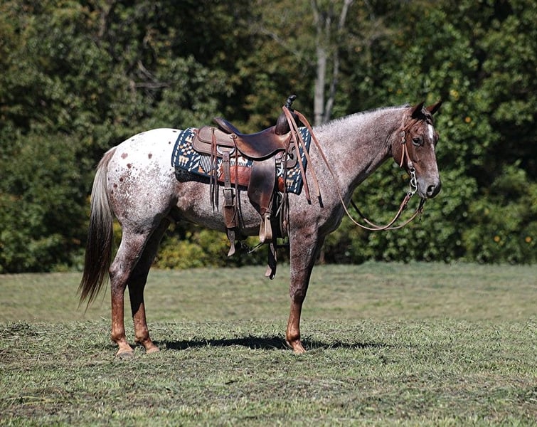 ONLINE AUCTION Place your bids at www.PlatinumEquineAuction.com Starting Bid $3500 Auction ends October 20th, 2024 Need a new saddle? Check out White Rock Saddles on our website or Facebook! Apache is a beautifully marked, 14.3H, 6 year old, Bay Appaloosa Horse Gelding. Apache is a well traveled horse that has been ridden in several states. He has been trail ridden in several states. He will cross creeks, ditches, logs and navigate rough rocky areas. Apache is safe riding in traffic. He has a smooth jog and a nice lope! Apache has been exposed to all kinds of wildlife such as deer or turkey or other animals like cows or dogs and will go anywhere that he is asked too. He has been rode many miles in the mountains of Eastern Kentucky and encountered every obstacle possible on the trail. He will go up or down even the steepest slopes, across deep creeks, over downed trees, and over all types of rough terrain while still being sure footed. If you have any questions call Lucky 13 Equine Lysandra 765-717-2041. Located in Brodhead, KY. ONLINE AUCTION Place your bids at www.PlatinumEquineAuction.com Starting Bid $3500 Auction ends October 20th, 2024 Need a new saddle? Check out White Rock Saddles on our website or Facebook!