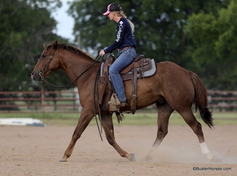 ONLINE AUCTION Place your bids at www.PlatinumEquineAuction.com Starting Bid $3500 Auction ends July 28th, 2024 Need a new saddle? Check out White Rock Saddles on our website or Facebook! “Nash” – 15H, 6 year old sorrel roan grade quarter horse gelding. Nash is a solid using horse. We have loaded him out several times to check fences and day work on when someone was short a horse, and he has been used many many horses in the turnback pen. He is pretty marked and has that classic using quart horse look. He rides outside just as well alone as he does with others, is used to going out alone and has probably been out more alone than he has been with others. He lives out in a big group of geldings, and has also stayed relaxed and happy when kept in the stall barn. He is easy to saddle and bridle, stands tied, gentle to groom and loves a bath. He hops right on the trailer and will stand tied quietly all day anywhere that you tie him up. Not remotely horsey / herd bound or barn sour, he enjoys having a job and going to work. Nash was just shod this two weeks ago, his teeth were also done by an equine dentist this spring, and he had his sheath cleaned, his ears treated for ticks, and he was also power packed wormed. He is good to shoe, has great feet and also goes well barefoot – if his new owner prefers him to be barefoot, we can have his shoes pulled and trim him prior to him heading to his new home. He will arrive at his new home up-to-date and ready to go to work! We are experienced, knowledgeable sellers, and we can help with quickly arranging affordable shipping to any buyer’s location – we have experience shipping worldwide – including regularly to Hawaii, Canada, Mexico, Europe, and South Africa. Please call Buster Horses Ashley at 214-605-7174 and please visit BusterHorses.com for lots of additional videos, and pictures. ONLINE AUCTION Place your bids at www.PlatinumEquineAuction.com Starting Bid $3500 Auction ends July 28th, 2024 Need a new saddle? Check out White Rock Saddles on our website or Facebook!