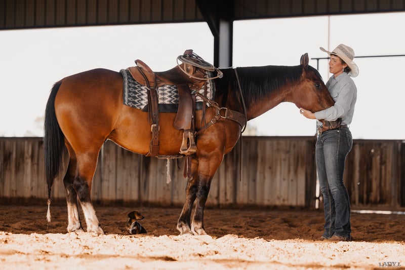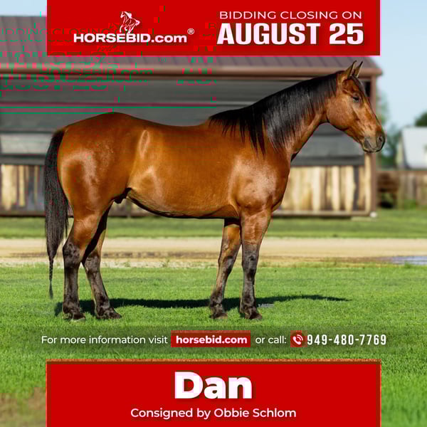⭐️ 𝐀𝐔𝐆𝐔𝐒𝐓 𝓐𝓵𝓵 𝓢𝓽𝓪𝓻 𝓛𝓲𝓷𝓮𝓾𝓹 ⭐️ Happening now thru MONDAY | AUGUST 25th - Available EXCLUSIVELY on HorseBid's website! For more details and to register visit: www.Horsebid.com CONSIGNOR CONTACT: Obbie Schlom (949) 480-7769 LOCATION: Canyon, TX BREED: Quarter Horse REGISTERED: Yes REGISTERED NAME: Santa Fe Gallo 809 COLOR: Bay HEIGHT: 15 AGE: 7 GENDER: Gelding "𝐃𝐚𝐧" 𝐒𝐚𝐧𝐭𝐞 𝐅𝐞 𝐆𝐚𝐥𝐥𝐨 𝟖𝟎𝟗 (2018 𝘈𝘘𝘏𝘈 𝘉𝘢𝘺 𝘎𝘦𝘭𝘥𝘪𝘯𝘨) Solid Ranch Gelding. This big, athletic, Gelding is one that's not going to give you a headache, and is as willing as they come. He's broke, moves off your feet, and has the strength to take you miles. Dan's quite literally dog gentle, his demeanor is as laid back as they come but don't let that fool you - he still has the motor to take you to where you want to go and has a nice pretty stop to boot! Dan has been ridden bridleless, he's roped out of the box, more so on the head side. With a few more trips and some seasoning, he'd make someone a very fun head horse. 6 days off, or 6 months off he stays the same. This is a Gelding that will fit all ages, and one that you will want to keep around for the long haul. Point him in any direction you want and have fun with him. If you're looking for a Gelding that won't be a hassle, you can enjoy, or use, Dan is your guy. Great feet, no vices, no soundness issues, passes pre purchase exam, UTD, easy going and great in the arena and outside in the pasture. Located in Canyon, TX and trained by Obbie Schlom.