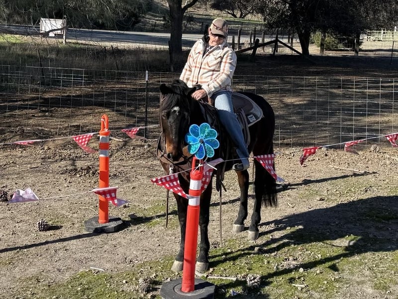 ONLINE AUCTION Place your bids at www.PlatinumEquineAuction.com Starting Bid $3500 Auction ends February 9th, 2025 Need a new saddle? Check out White Rock Saddles on our website or Facebook! Let me tell you all about Dexter , the horse that’s basically a four-legged superhero! Standing just at 15 hands, this 7-year-old gelding is not just built like a tank; he’s also the sweetest, most chill horse you’ll ever meet. Imagine a buddy who’s always down for an adventure—Dexter has tackled hundreds of miles through the stunning Santa Cruz mountains and scenic Redwoods , breezing through steep hills. narrow trails deep creek crossings and heavily brushed country and handles like it’s a walk in the park. And don’t even get me started on his confidence! He’s conquered obstacles like bridges, tires, and even car washes without any concern. Tarps, flags flying and balls bouncing are a cake walk for this sure footed trusty companion like Dexter. Now, if you’re into fancy footwork, you’ll love his smooth, hobby horse lope and that gliding trot. Transitioning between gaits like it’s as smooth and silk. He’s got a nice stop, can turn around with ease, and backs up like a pro all with just the slightest little leg pressure. He’s also done his fair share of cattle gathering and branding, plus he’s started roping. Talk about a versatile guy! He’s been to town, is calm around traffic, dogs, and all sorts of wildlife, making him the ultimate adventure partner. But here’s the real kicker. Dexter is the kind of horse you can trust with your inexperienced friends or relatives. You can just sit back and relax, knowing he’s got their back. He’s a total sweetheart when it comes to grooming and bathing, and he’s patient in cross ties. Loading up in any trailer? Easy peasy! Always ready for new places, he’s well-cared for and up to date on everything. If you’re on the hunt for a safe, trustworthy family member, Dexter is your guy! Give Dina at Longhorn Ranch a call at 831-537-1915 and come meet your new best friend. Located in Paicines, CA. ONLINE AUCTION Place your bids at www.PlatinumEquineAuction.com Starting Bid $3500 Auction ends February 9th, 2025 Need a new saddle? Check out White Rock Saddles on our website or Facebook!