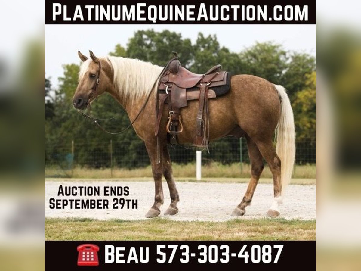 ONLINE AUCTION Place your bids at www.PlatinumEquineAuction.com Starting Bid $3500 Auction ends September 29th, 2024 Need a new saddle? Check out White Rock Saddles on our website or Facebook! Hank is a beautiful 6 year old chocolate palomino draft cross gelding that stands a perfect 15 hands tall and has great conformation. He has been trail ridden absolutely everywhere! He goes anywhere and crosses anything you point him at. He is quiet on the trail and rides out great alone or in a group and doesn’t care if he is in the front middle or back. He is traffic safe and has been around all types of farm animals and wildlife. He has been on many overnight trips and does great! Hank also does great in the arena. He picks up both leads and has a good stop and would make an excellent rodeo pickup/bull shaggin horse if you choose to take him that way He is an honest good minded gelding and does well with time off.He is a blast to ride and loves to please! -no spook -no buck -no bite/kick -Loads/Unloads great -stands good for farrier -stands good for clipping -does great in a stall or out on pasture -does well with other horses -utd on worming and dental work -100% sound -no old injuries or scars Any other questions feel free to give me a call or text anytime Broken S Equine Beau 573-303-4087 Located in Sweet Springs, MO. ONLINE AUCTION Place your bids at www.PlatinumEquineAuction.com Starting Bid $3500 Auction ends September 29th, 2024 Need a new saddle? Check out White Rock Saddles on our website or Facebook!