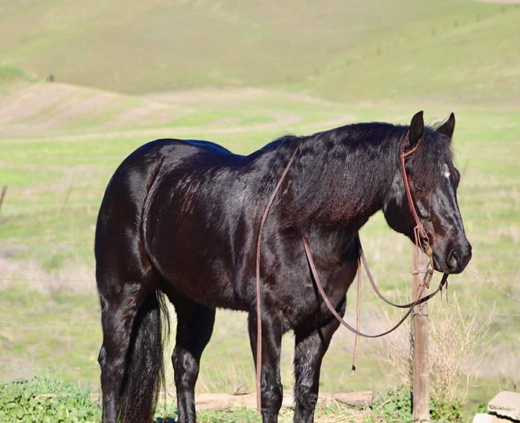 ONLINE AUCTION Place your bids at www.PlatinumEquineAuction.com Starting Bid $3500 Auction ends January 11th, 2025 Need a new saddle? Check out White Rock Saddles on our website or Facebook TLJ BLUEBERRY CAT — “Drifter” Some horses are nice to ride.Some horses are nice to be around. And every once in a while, one comes along that’s the whole package. Drifter is a 2018 AQHA deep, dark blue roan gelding standing a stout 15 hands tall and built as wide as he is solid. He has the kind of presence that turns heads, but the kind of personality that wins hearts. This gelding truly thinks he’s a puppy dog, always the first one to meet you at the gate, happy to follow you around, and genuinely enjoys being with his people. Professionally started and trained correctly, Drifter goes around the arena quiet, smooth, and beautifully. He carries a low, collected headset, has an impressive sliding stop, and a correct, balanced turnaround. He’s fancy enough to catch the eye, yet broke enough to make every ride enjoyable. He has a wonderful demeanor and is safe for all levels of riders. Outside the arena, Drifter is just as solid. He’s been hauled all over the country, from beaches and busy cities to mountains and rivers. Bridges, water crossings, traffic, and new environments don’t phase him in the slightest. He steps out confidently and willingly, always taking care of his rider. He’s also been used around cattle and has moved pairs on the ranch, showing his versatility and willingness to work. Whether you’re dreaming of a future performance partner or looking for a quiet, laid-back gelding to enjoy at home, Drifter fits both worlds effortlessly. At the perfect age with the ideal build, mind, and training, Drifter is the kind of horse that’s hard to replace once he’s gone. If you’re looking for one that you can trust, enjoy, and be proud to swing a leg over this is your guy. He is located in Bitterwater, CA. For more information or to schedule a time to come see him for yourself please contact Cheyenne Rey at 831-537-8746. ONLINE AUCTION Place your bids at www.PlatinumEquineAuction.com Starting Bid $3500 Auction ends January 11th, 2025 Need a new saddle? Check out White Rock Saddles on our website or Facebook