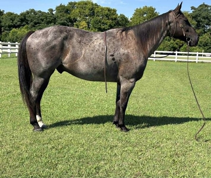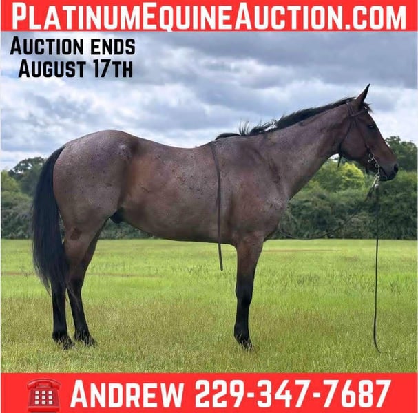 ONLINE AUCTION Place your bids at www.PlatinumEquineAuction.com Starting Bid $3500 Auction ends August 17th, 2025 Need a new saddle? Check out White Rock Saddles on our website or Facebook Hollywood is a 2018 model blue roan quarter horse gelding. He stands 15 hands tall and is built like a tank. Hollywood has been ridden all over South Georgia and is an absolute blast. He will walk through water and over logs and anything else in his path without hesitation. He will ride off alone, or with a herd. He will walk into water and over obstacles before thinking twice. He is super broke and always willing to please. Hollywood would make a great kids horse as he is extremely gentle. He is the most level headed I’ve ever owned and doesn’t spook at anything. Hollywood can be ridden bareback or with a saddle. He stands for the farrier and to be saddled and takes a bit with ease. UTD on coggins and vaccines. Contact Andrew Dismuke 229-347-7687 with any questions. Located in Dawson, GA. ONLINE AUCTION Place your bids at www.PlatinumEquineAuction.com Starting Bid $3500 Auction ends August 17th, 2025 Need a new saddle? Check out White Rock Saddles on our website or Facebook